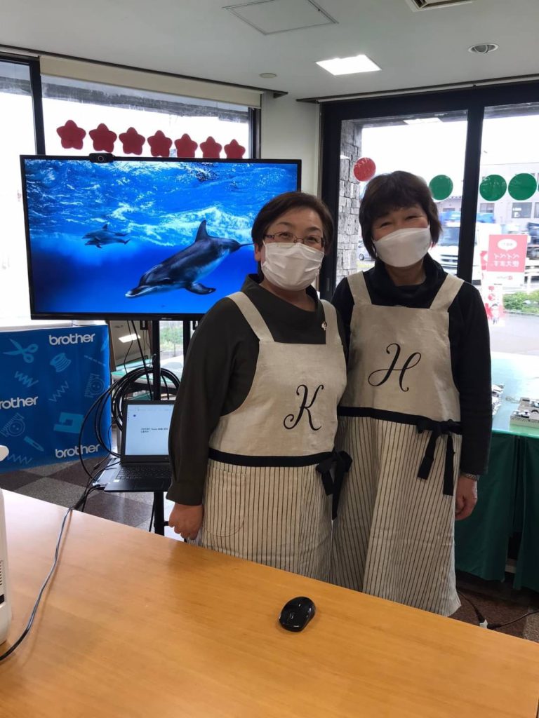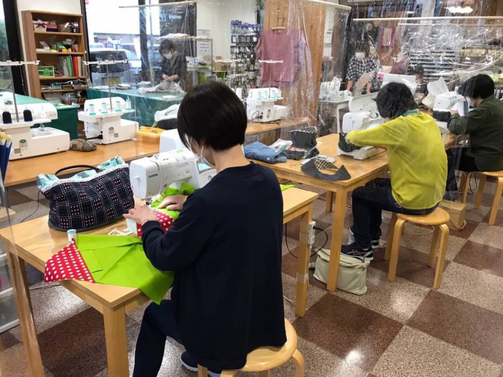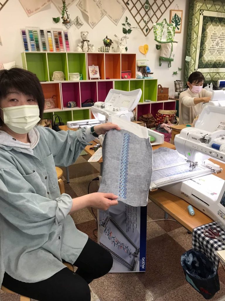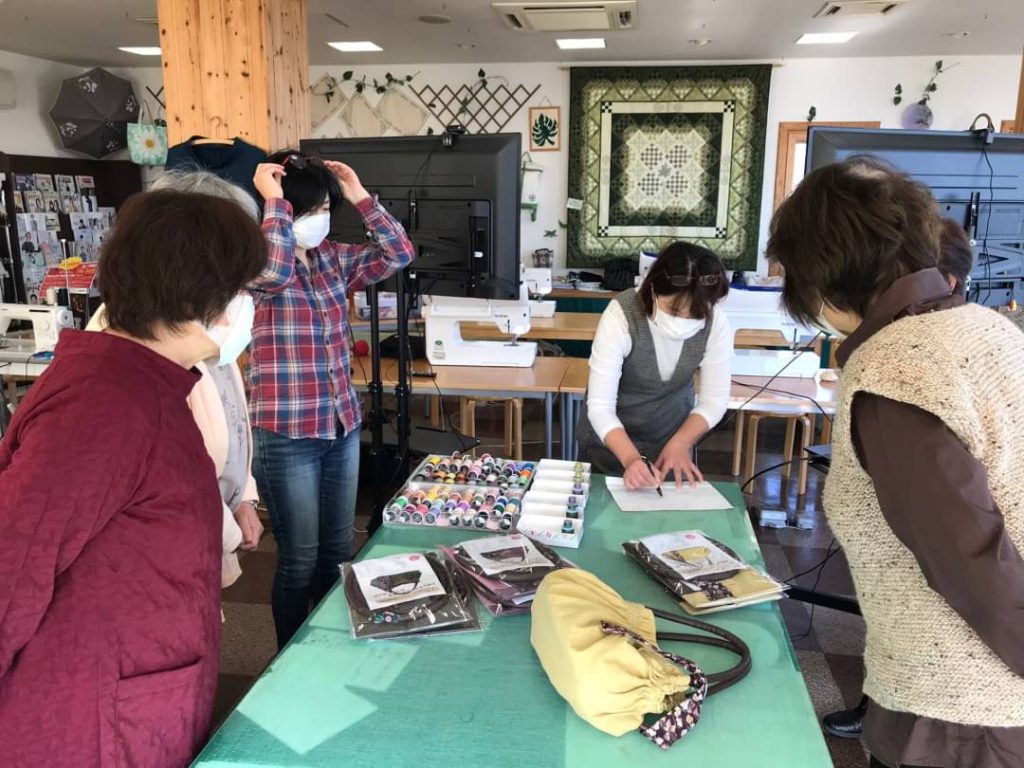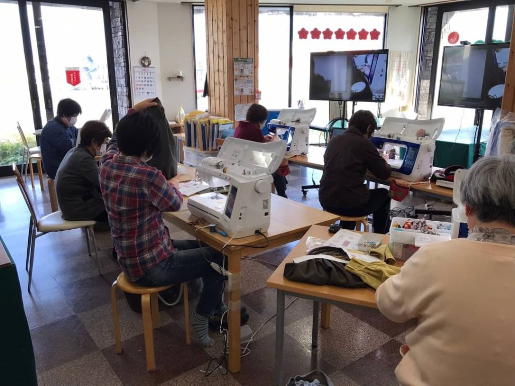 買っていただいたミシンを使って『帽子』『エコバッグ』そしてロックミシンで『カーディガン』の初回講習会を行いました。出来上がったときの笑顔が素敵でした。