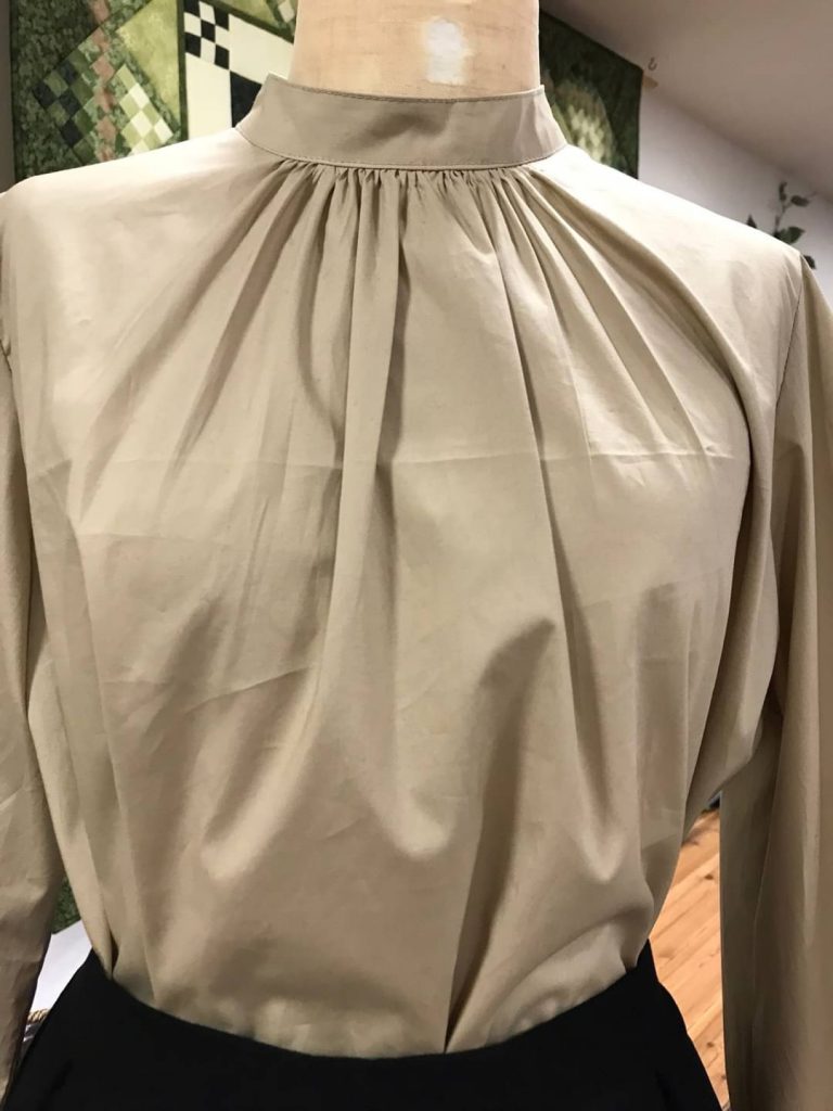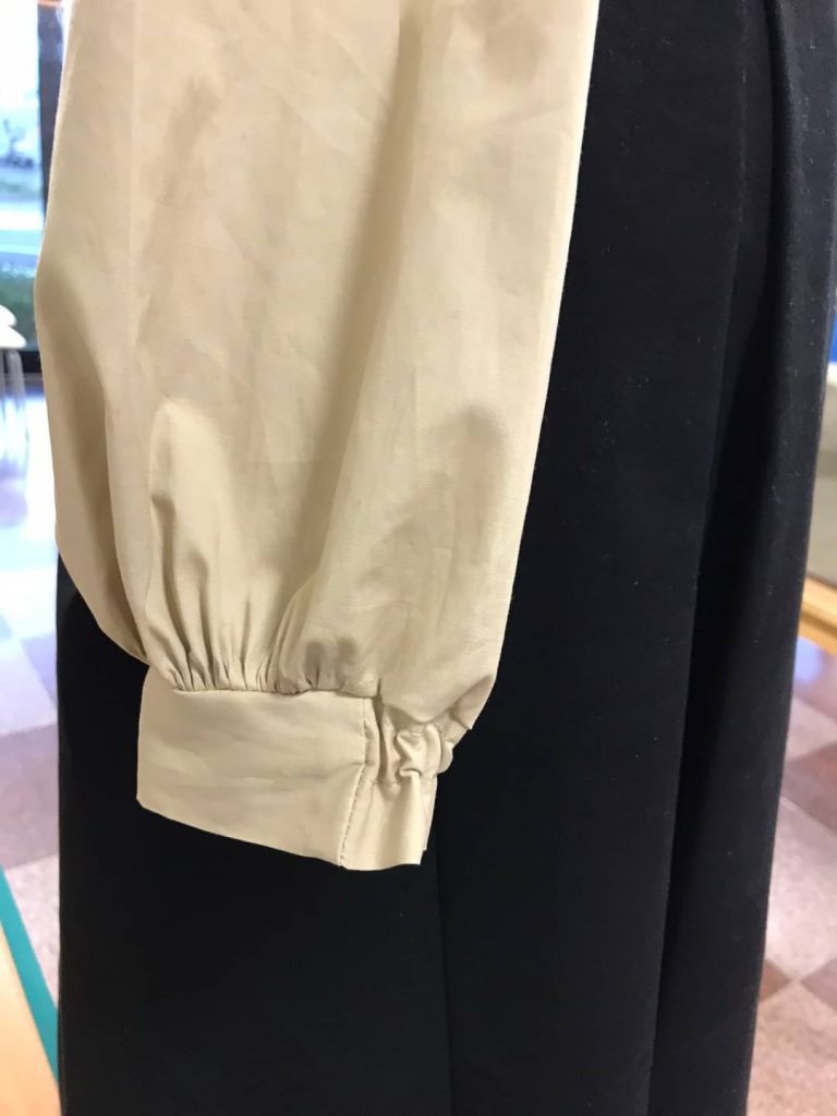 ブラウスはギャザーたっぷりで袖口にも特徴があります。