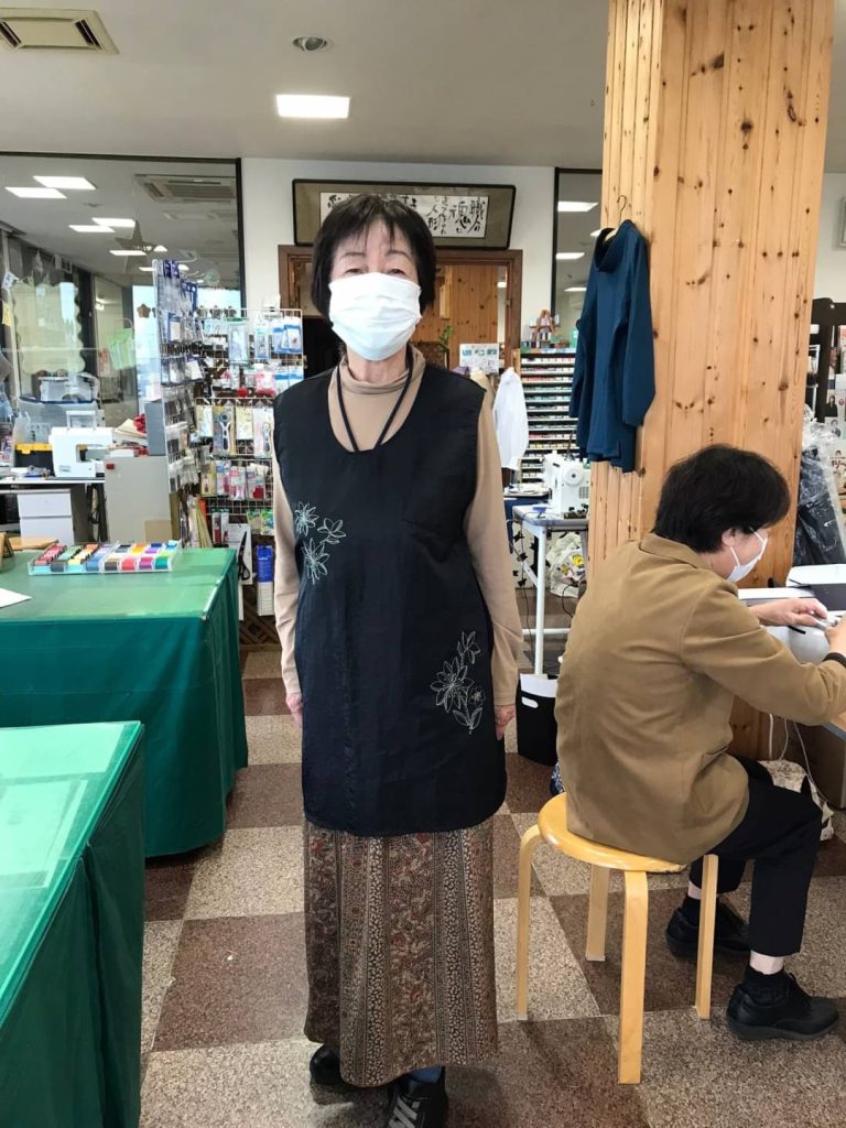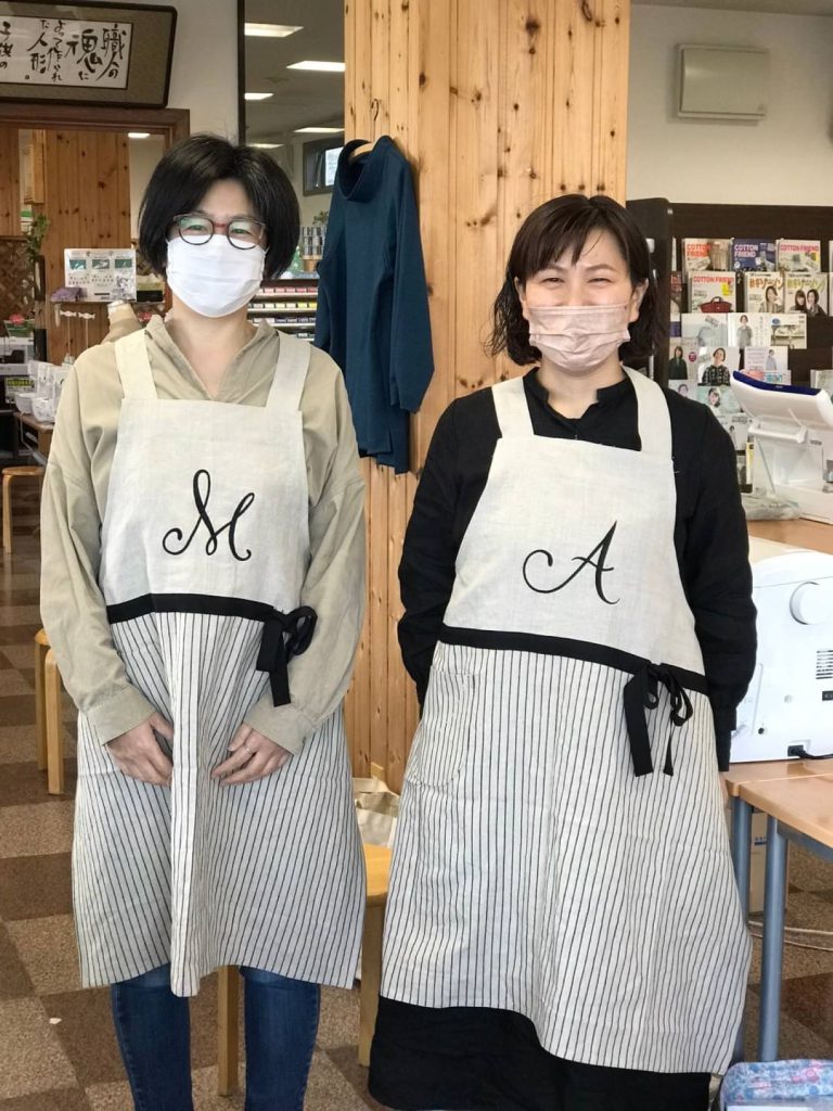 今回のエプロンの形が、以前使用していた物と同タイプで非常に着やすかったらしく😊自分で作ってみようと参加されました。