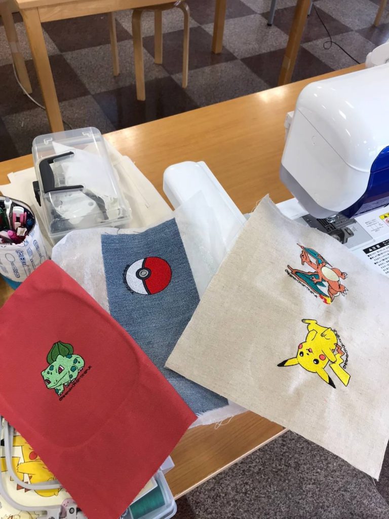 2時間なんてあっという間に過ぎてしまうくらい、皆さん集中して模様を選び、刺繍に取り掛かります。他の方の作品を見るのは、物作りの幅が広がります。暫くの間、この講習はお休みとなりますが、ご自宅でも引き続き刺繍をお楽しみくださいね!