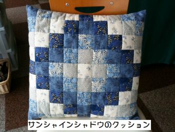何を作っているのか聞いてみると、「サンシャインシャドウのクッション」との答え。グラデーション効果がとてもきれいな技法で、クイックキルト講習会でも現在進行中です。