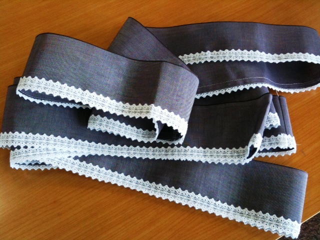 (@_@;) ヘリにレースが縫いつけてあります…。可愛い♪ 完成が楽しみです。出来たらアップします。