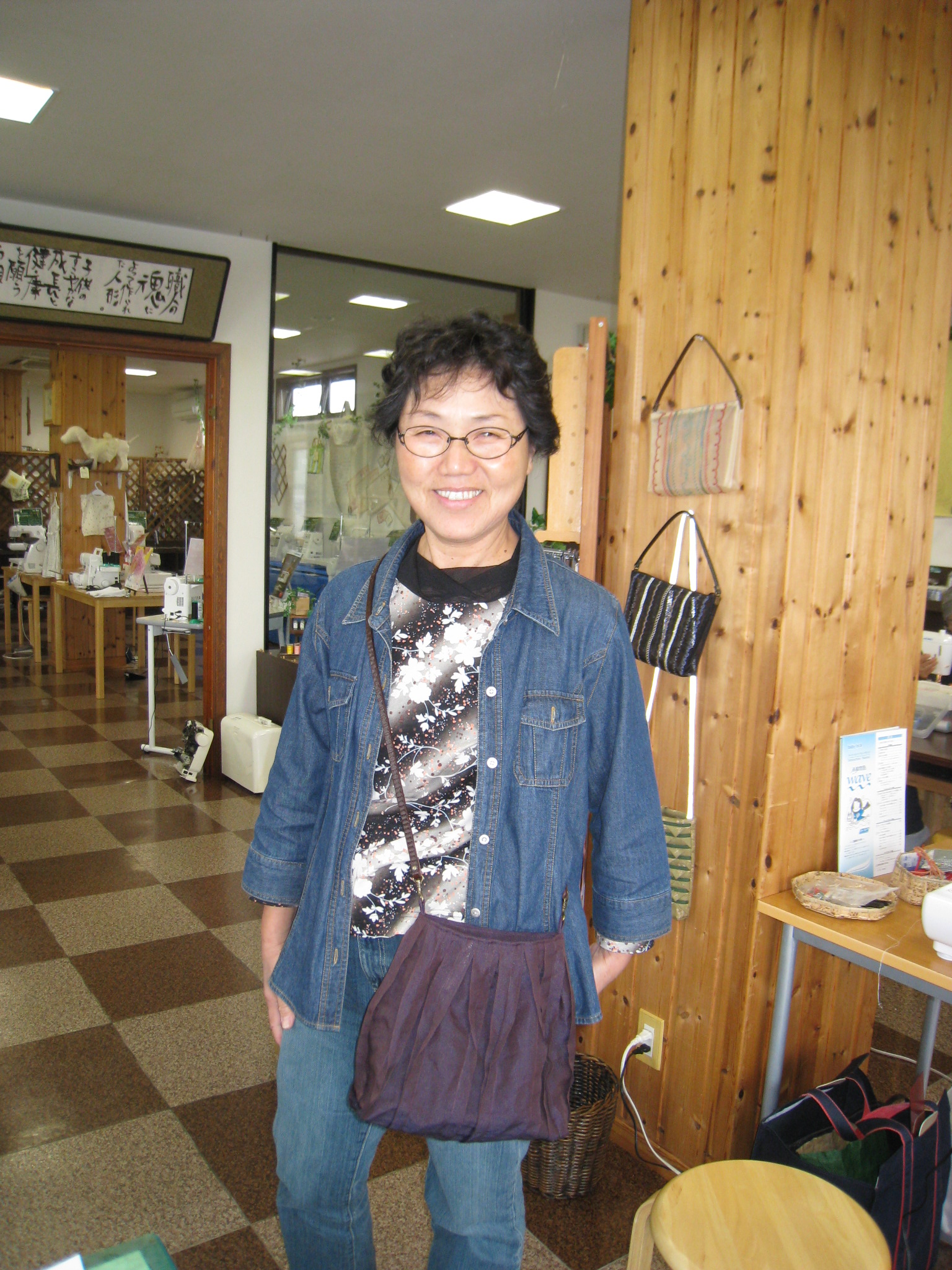 そして、臼井さんも『たたみのヘリのバッグ』(ステッチの赤がキーポイント)が出来上がって顔は写さないでと『ハイポーズ』でした。