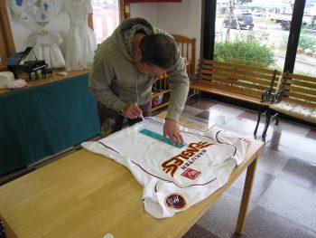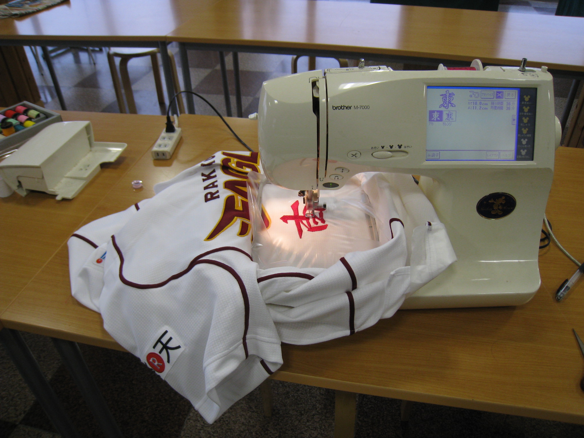 先週に引き続き、楽天のユニフォームに刺しゅうを入れることに…