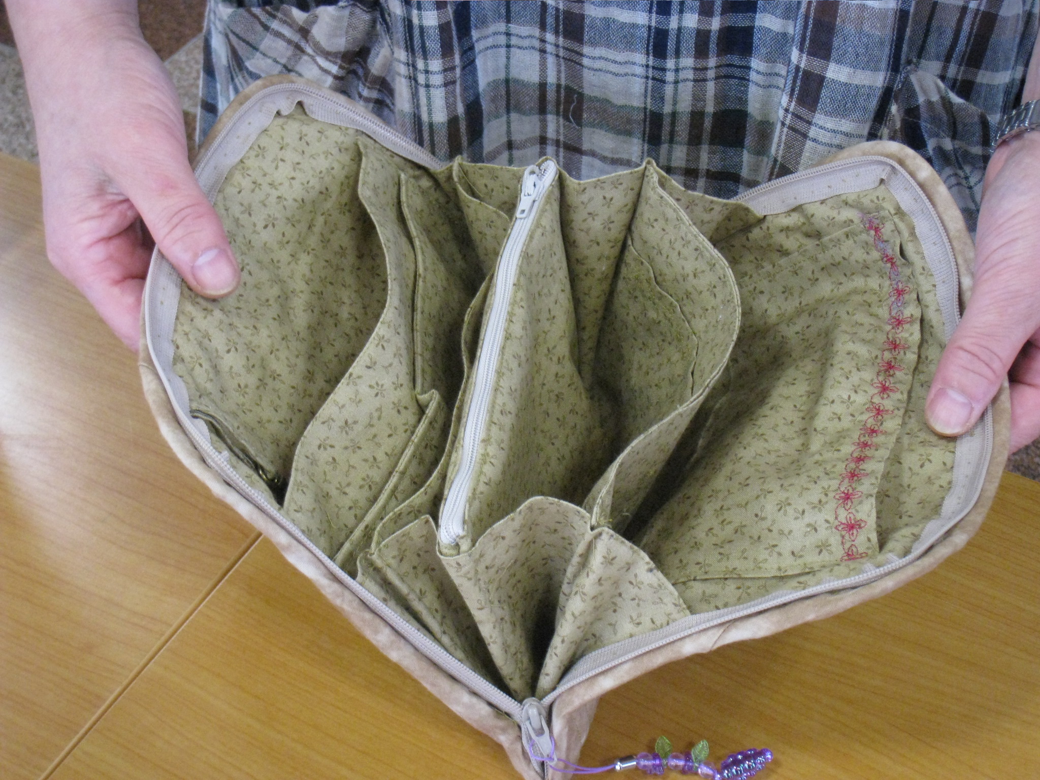 さっそく、薄井さんがぶどうのアップリケで作ったポーチをお披露目。