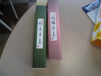 そして、講習会も終わりお茶の時間です。京野さんから東京のお土産で『紅梅羊羹』と