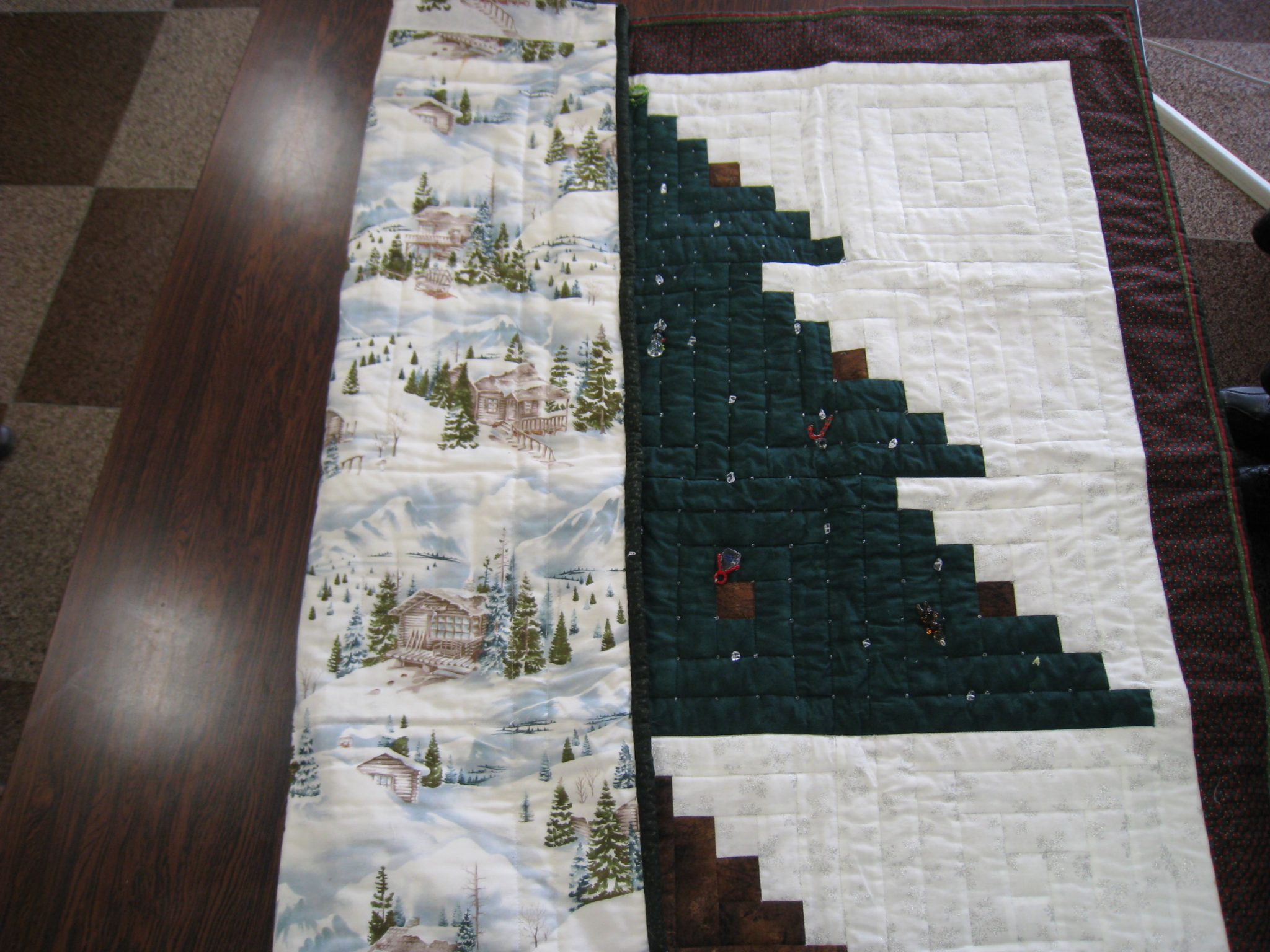 講習会終了後、後藤さんがログキャビンで作った『クリスマスのタペストリー』を披露!