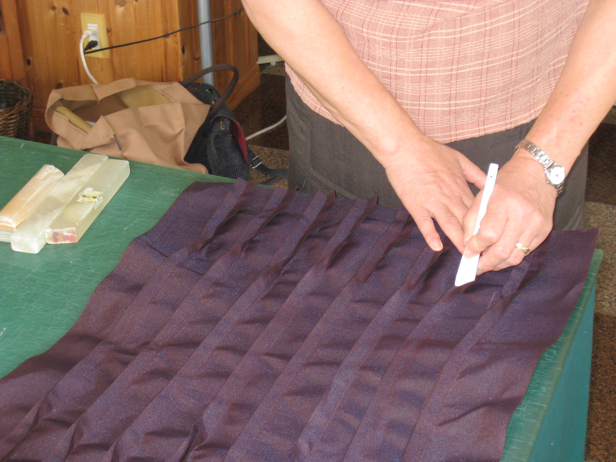 『畳のヘリ』は1、裁ち目かがりをしなくてもよい、2、直線で縫える。という、扱いのよさがあります。それと何といっても、『シームオープナー』を使って折り目をつけるのが、妙に気持ちがいい感じがします。