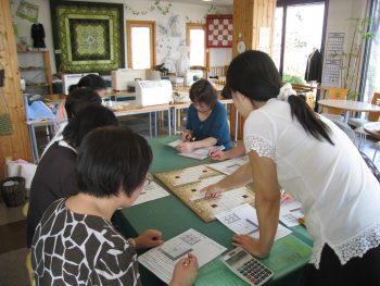 最後に、布の要尺計算のお勉強をしました。わかったようでわからない説明に