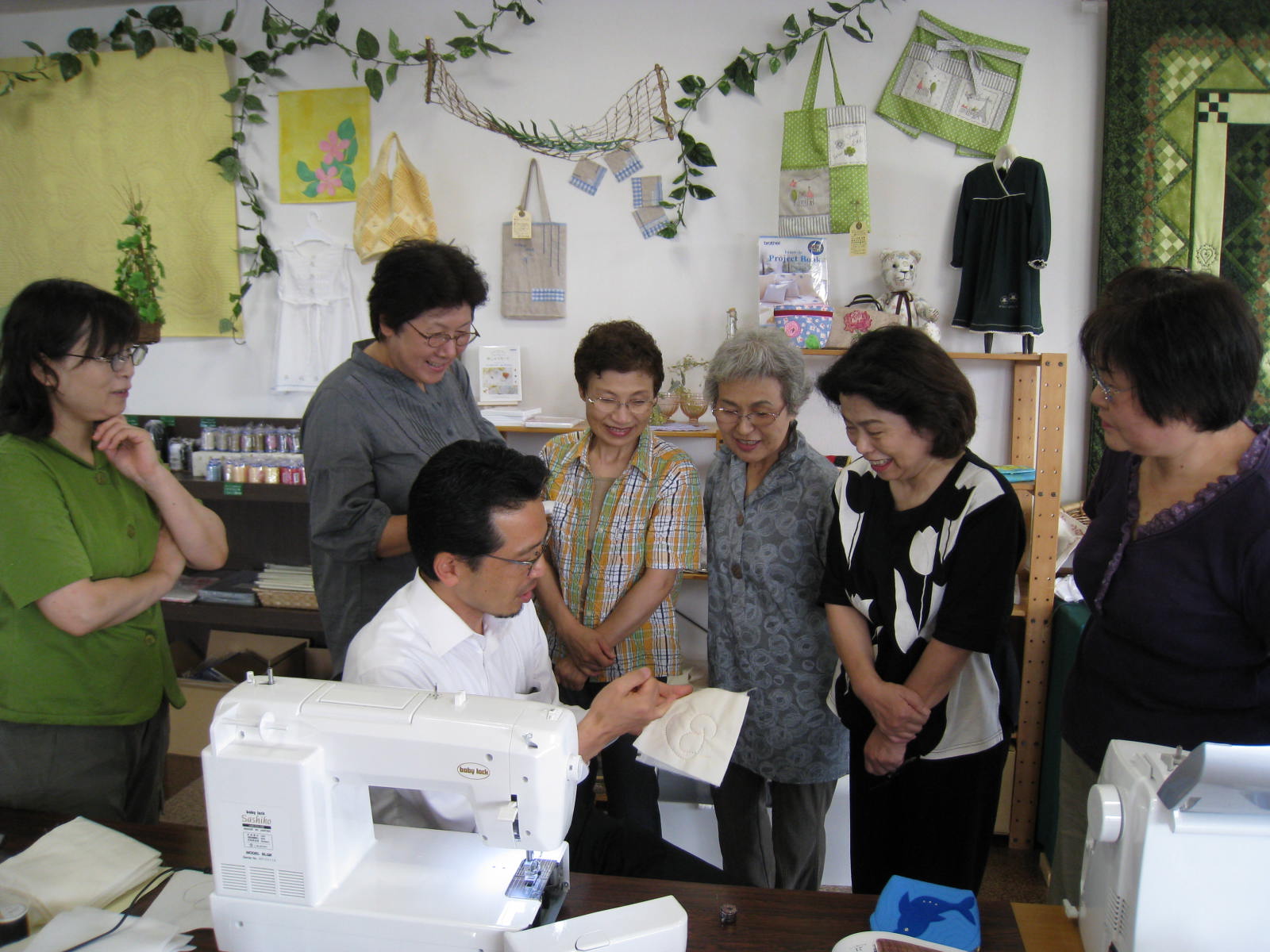 それと今日は午前中にベビーロックのイケメン『狩野さん』が来店。社長が修理から帰ってこなかったので、たまたま持ってきた『SASIKO』ミシンのミニ講習会を始めました。ミシンの動き方を見た京野さんが『餅つきペッたんみたい』とちょっとよくわかるような、わからないようなことを言って皆さん大笑いでした。