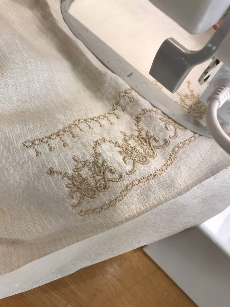 フェミニンな刺しゅうエプロンのリモート講習会