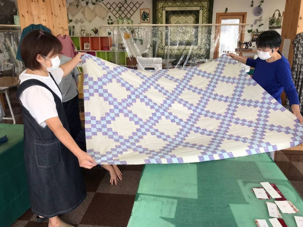 本間さんが作成途中の『ダブルアイリッシュチェーン』のタペストリー?を見せてくれました。