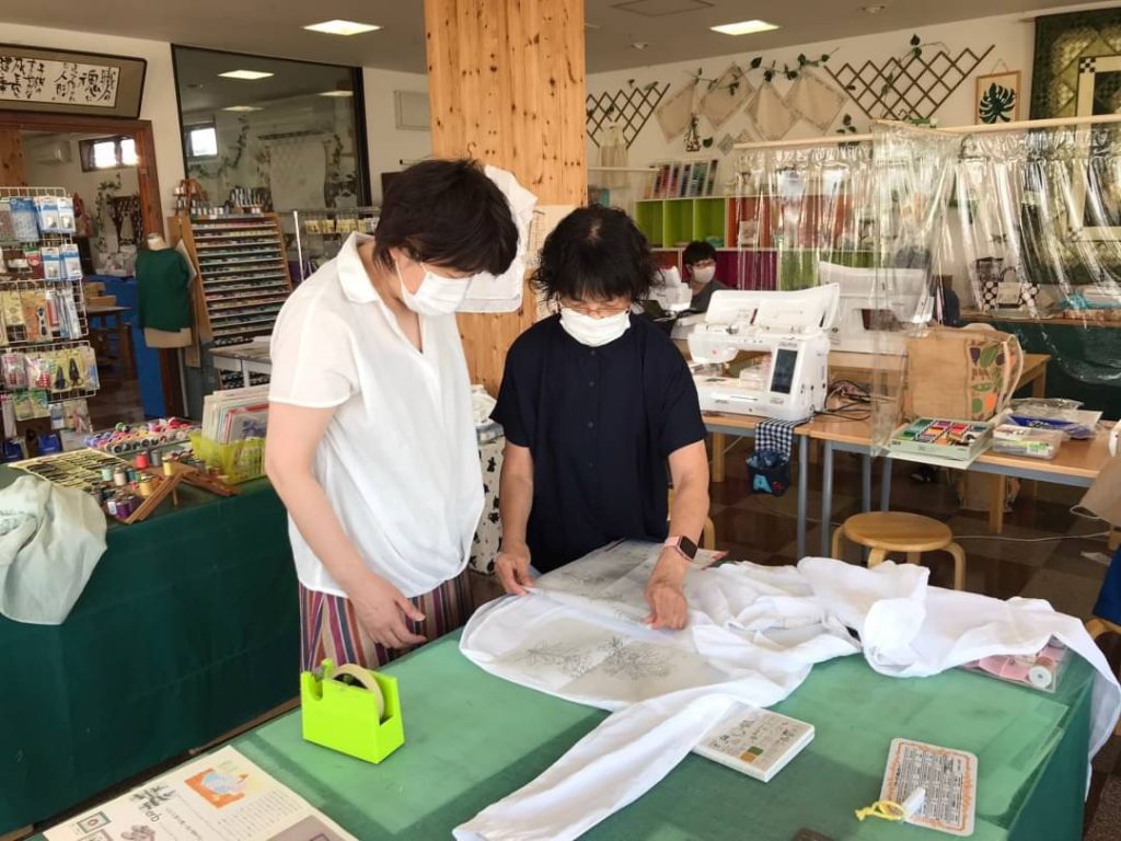 2時間なんてあっという間に過ぎてしまうくらい、皆さん集中して模様を選び、刺繍に取り掛かります。他の方の作品を見るのは、物作りの幅が広がります。暫くの間、この講習はお休みとなりますが、ご自宅でも引き続き刺繍をお楽しみくださいね!
