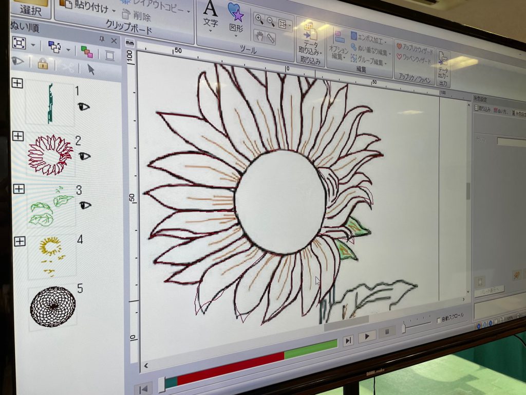 テーマは「下絵を元に刺しゅうデータを作成」パソコンを使って下絵画像を元に線を描いていきます。