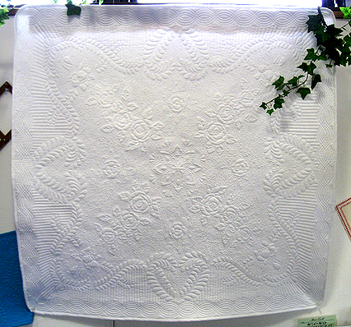 ホワイトキルト2011年09月20日更新模様の浮き上がりがとても美しいホワイトキルトです。フリーモーションでのスティップリングがポイントです!ホワイトキルトの拡大です。難易度:未登録作成時間:未登録キルト