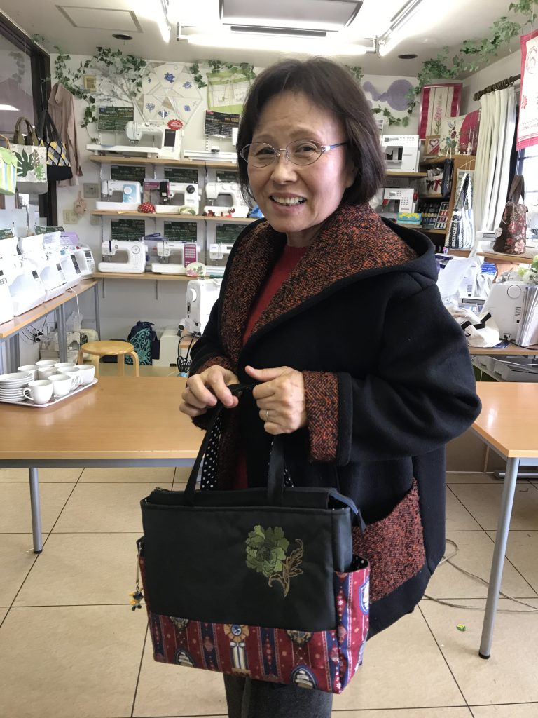 神部さんの『使いやすいバッグ』2019年02月07日更新 『ローラアシュレイ』の刺しゅうがポイントです。口にはファスナーを付け、マチにはポケットがあり、とても使いやすいバッグに仕上がっています。難易度:★★作成時間:講習会2回程度バッグ小物