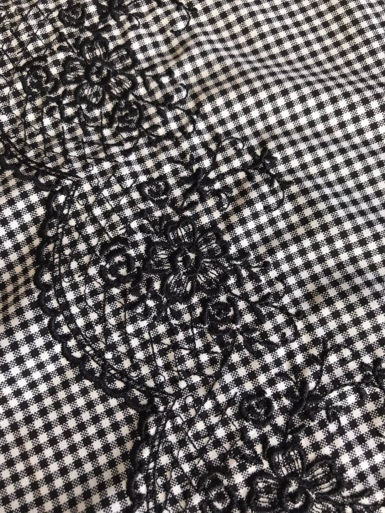 黒のチェックの生地は伊藤さんのチュニックになります。刺繍をいれてまずは生地作りから❣️出来上がりぎ楽しみですね😊