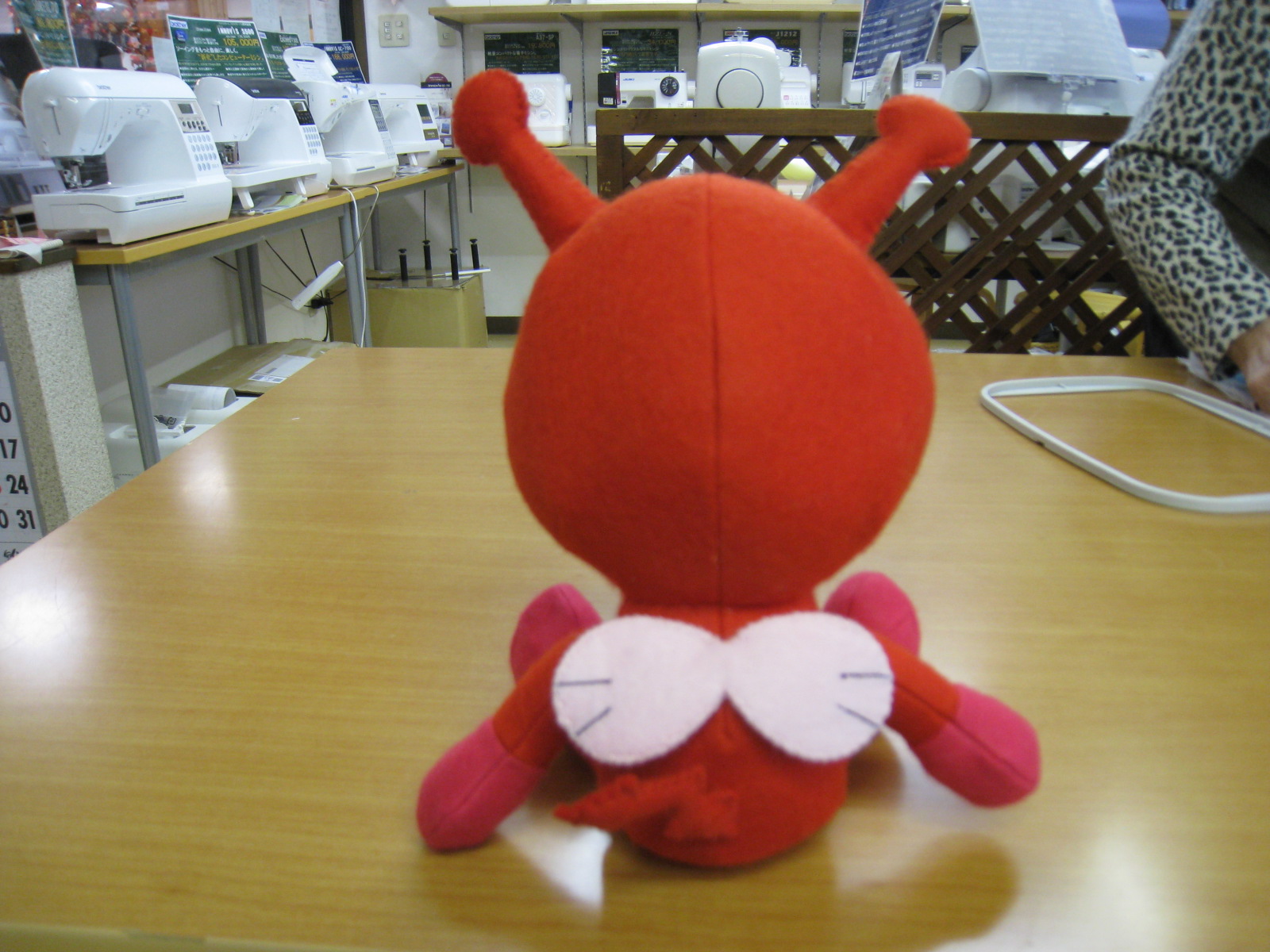 お孫さん(男の子、3歳)に作ってあげた、『あかバイキンマン』のぬいぐるみです。