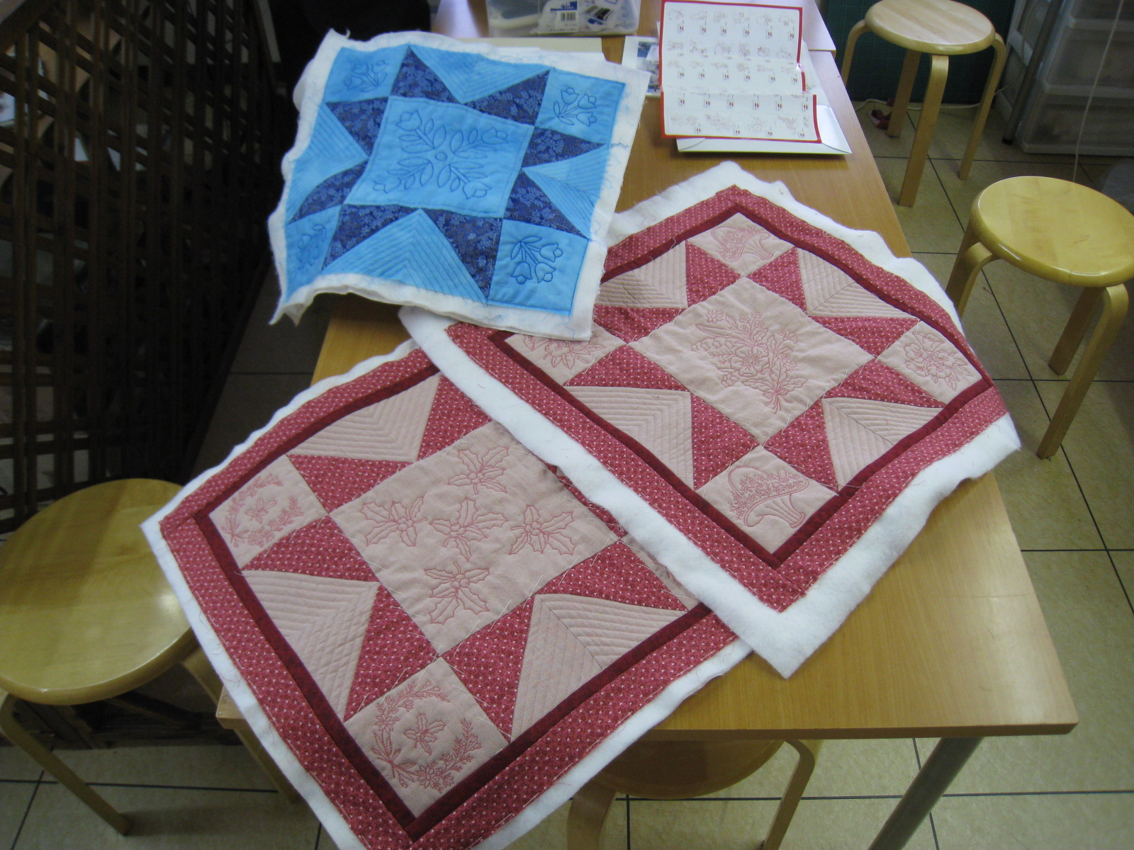 午前の講習会では、後藤さん、粕谷さんがきのうまでのキルト講習会で作成していた、