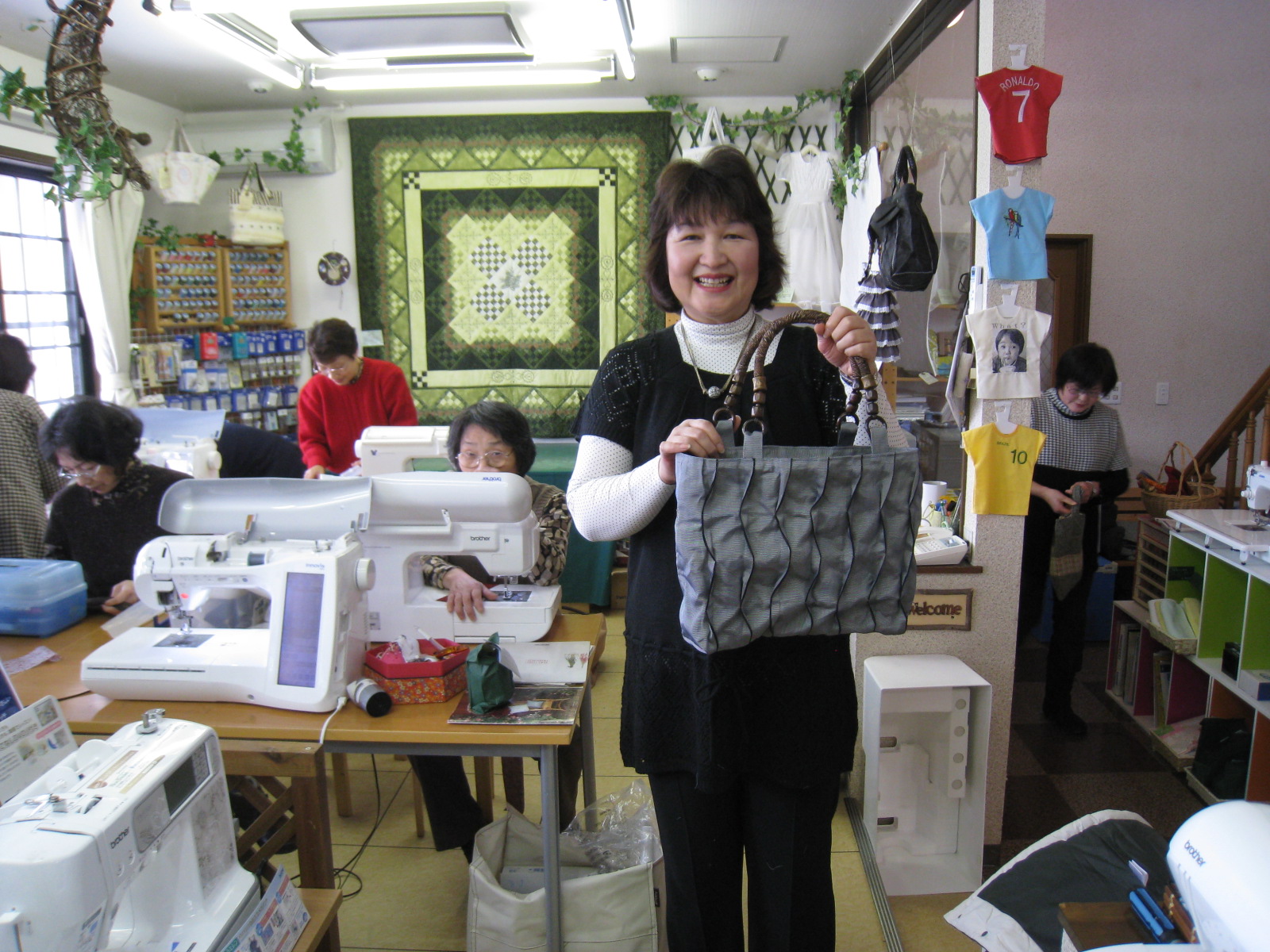 午前と午後、通しで参加の新庄の五十嵐さん。今日一日で、2つのバッグを作り上げました。
