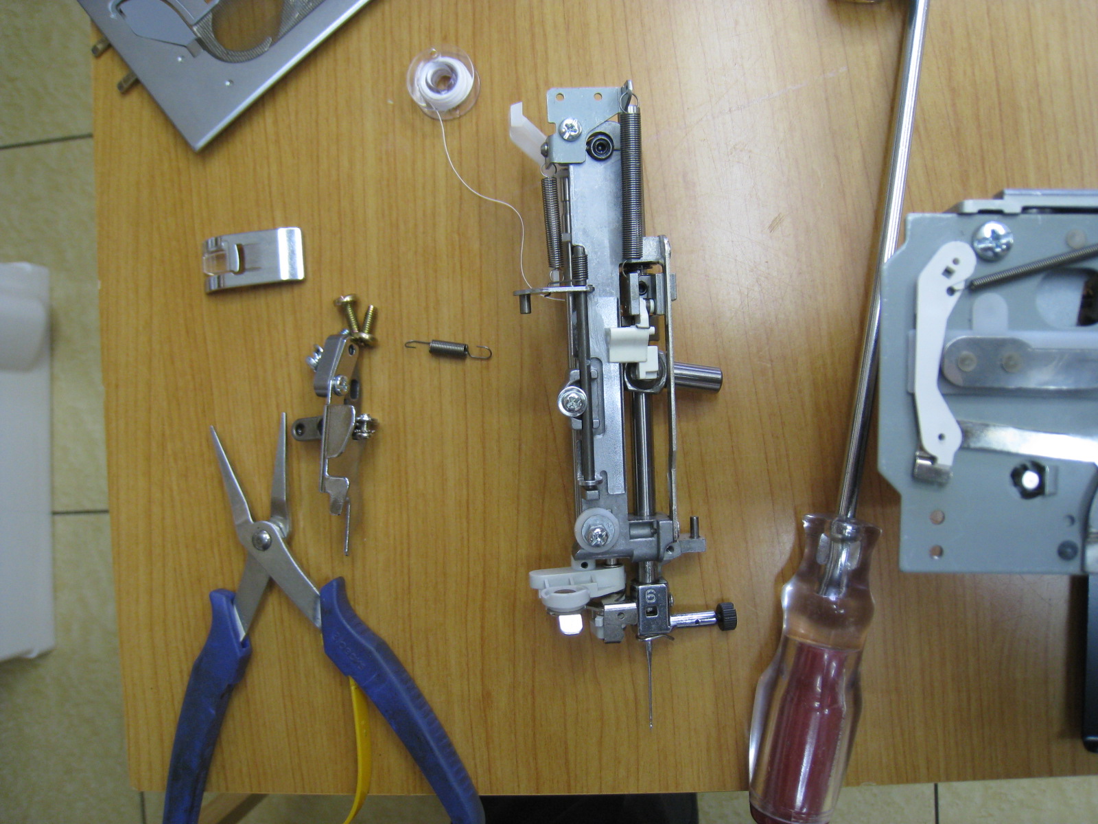 を取り除いて、新たに油を差して、針棒が左右に動くようにして組み付け点検して修理完了です。