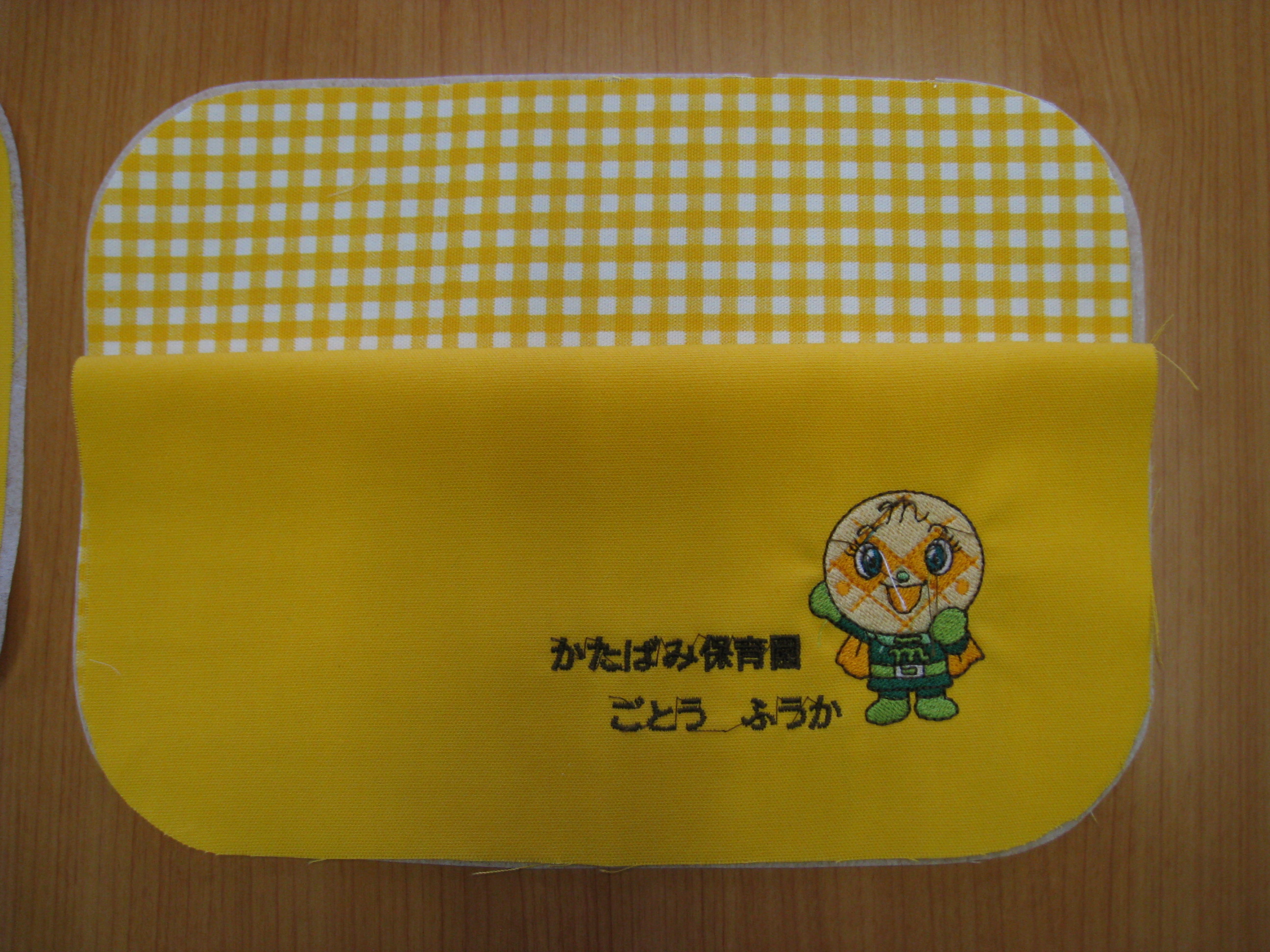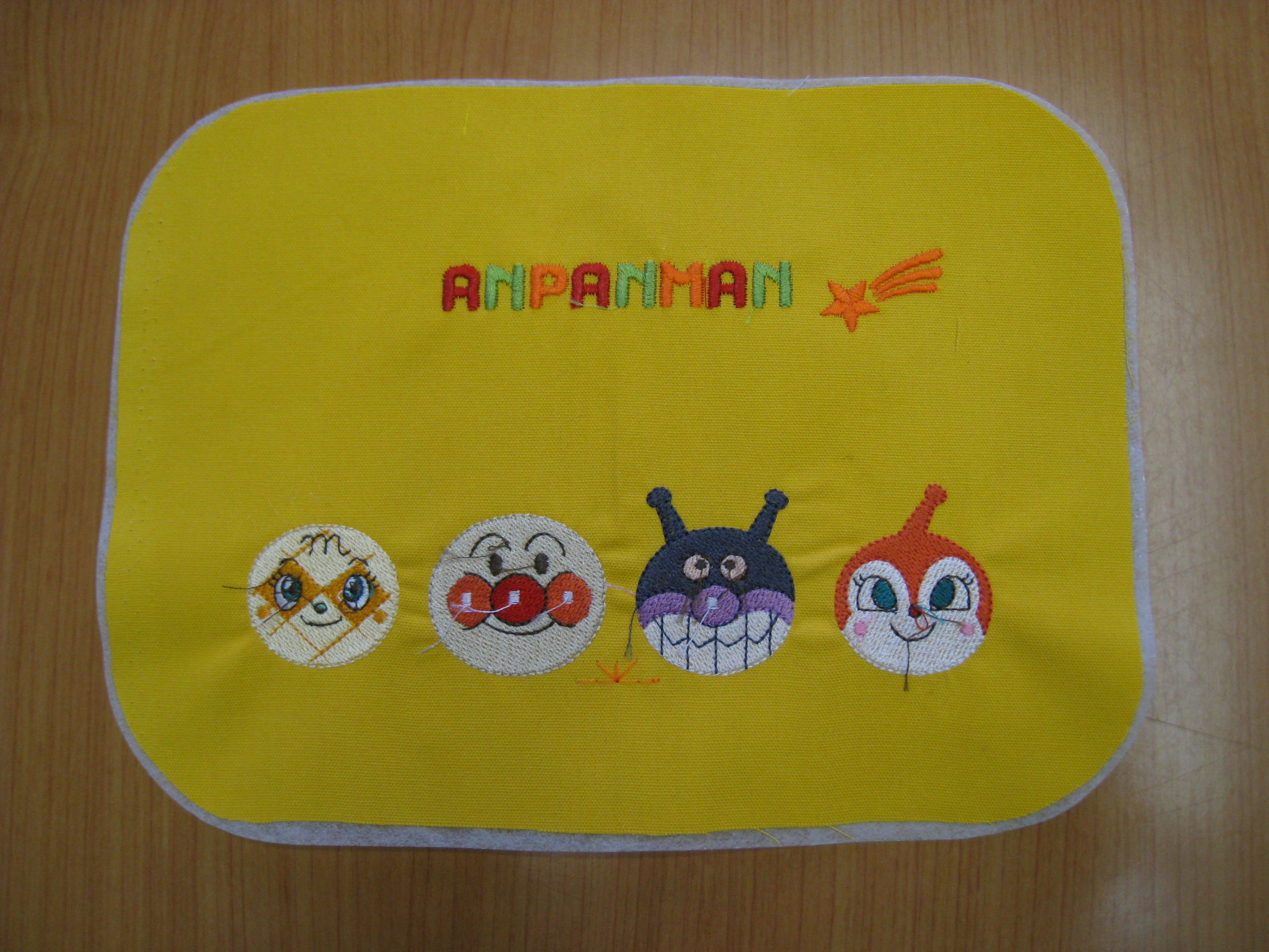 黄色のバッグにアンパンマンの刺しゅうを入れてみました。これも出来上がりをお楽しみに!