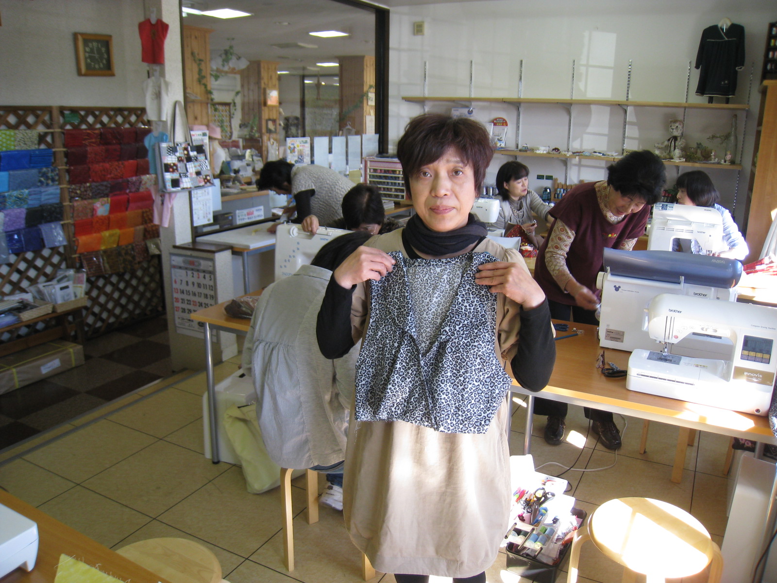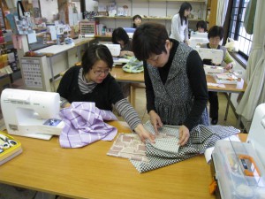 います。午後の講習ではなぜか、ミシンのトラブルが大発生。早坂さん(奥さん)のミシンで