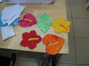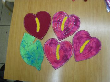 今回のコースターのデザインはアンスリウム、ハイビスカス、リーフなど角が鋭角でないもの