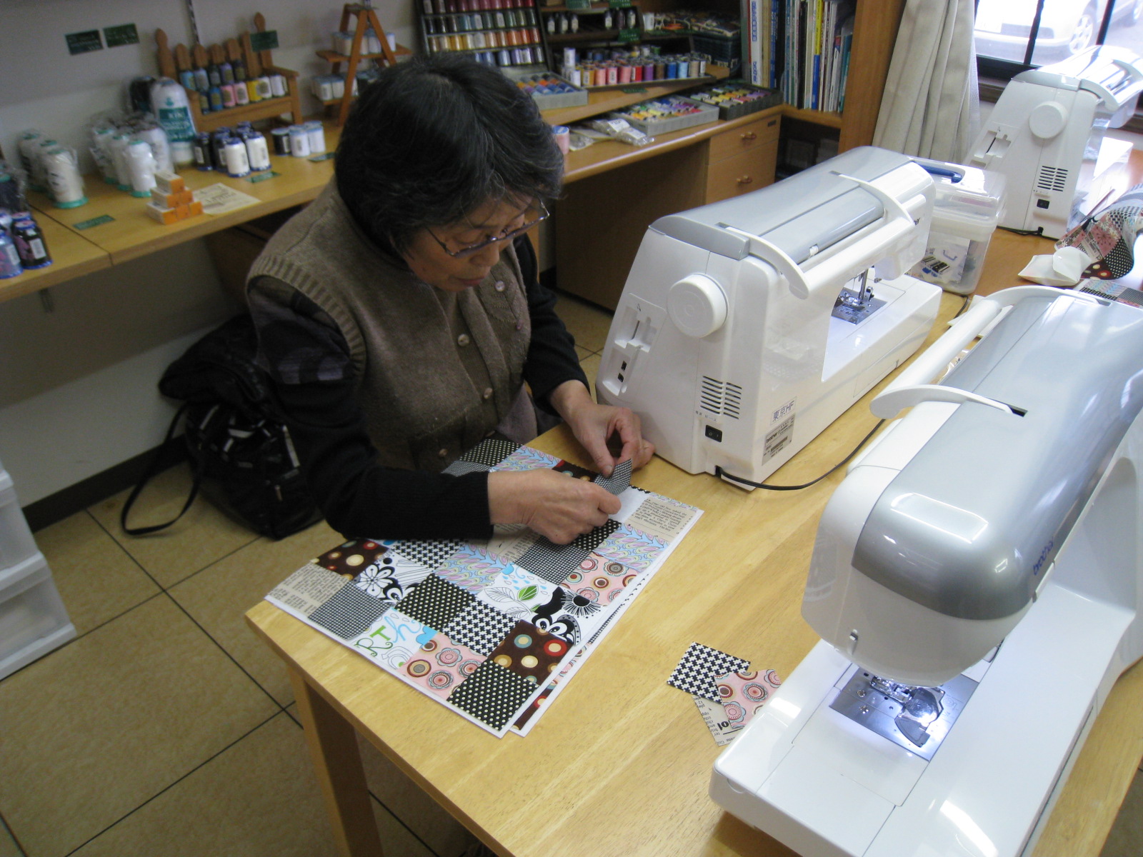 います。これがびっくりするくらい?忙しい。ミシンの売場と講習スペースを別室に移動。