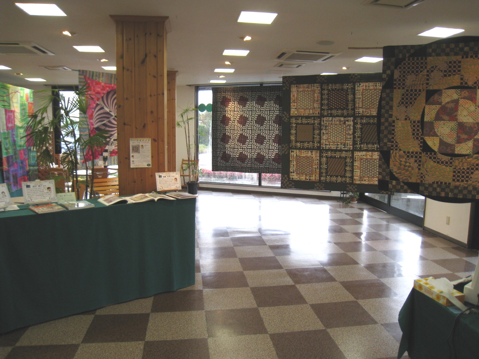 きのうはキルト作家展の片づけ、箱詰め、今日からの手作り作品展、カレンダーキルト展の