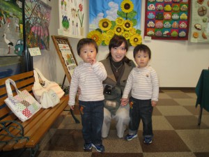 立川の相馬さんが双子さん(りくとクン、あきとクン)を連れての来店。今日から開催の作品展の