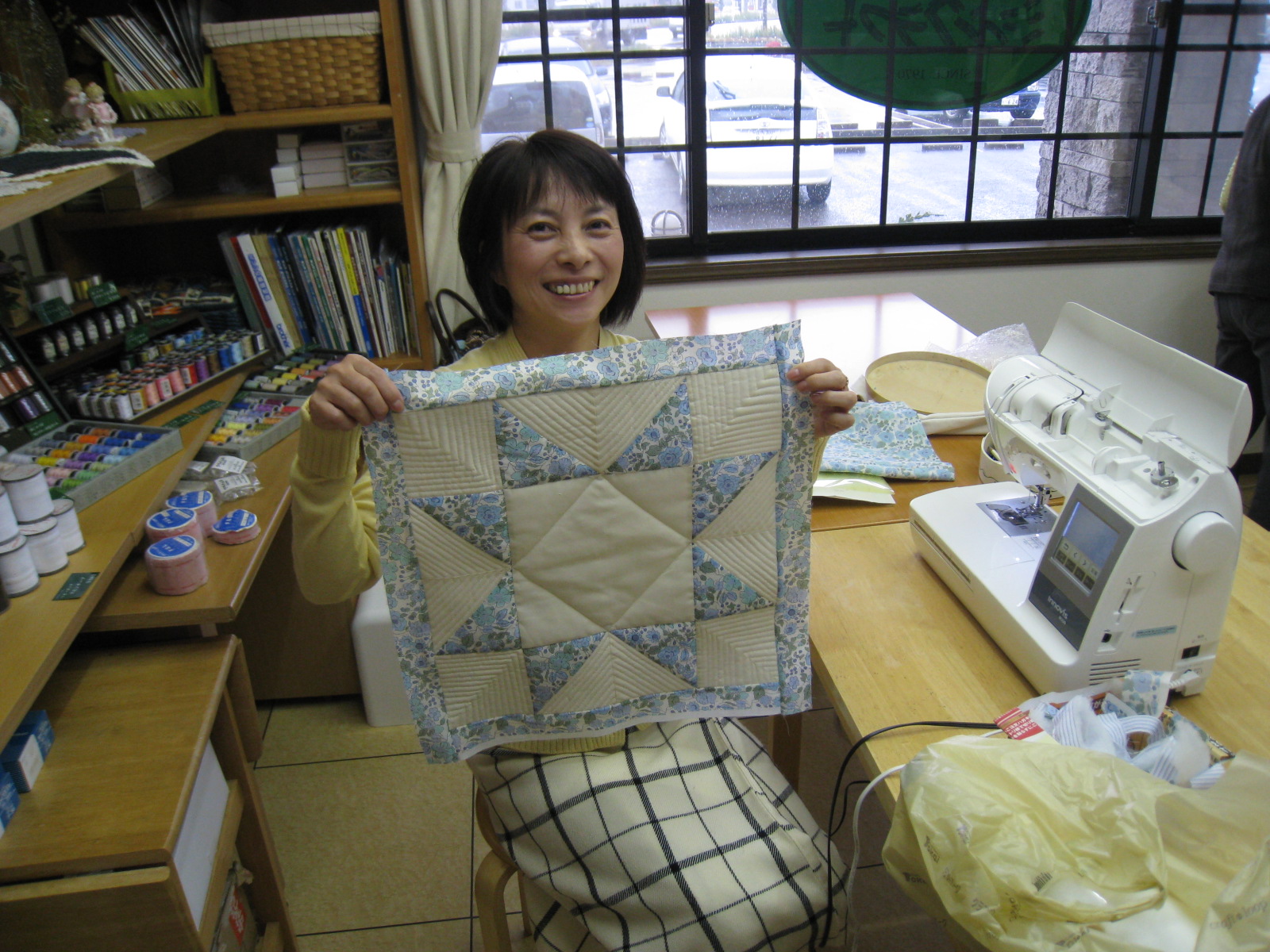 の手作りカバーの作品を持ってきてくれたり、新発売のミシンの話題?があったり、いろいろと