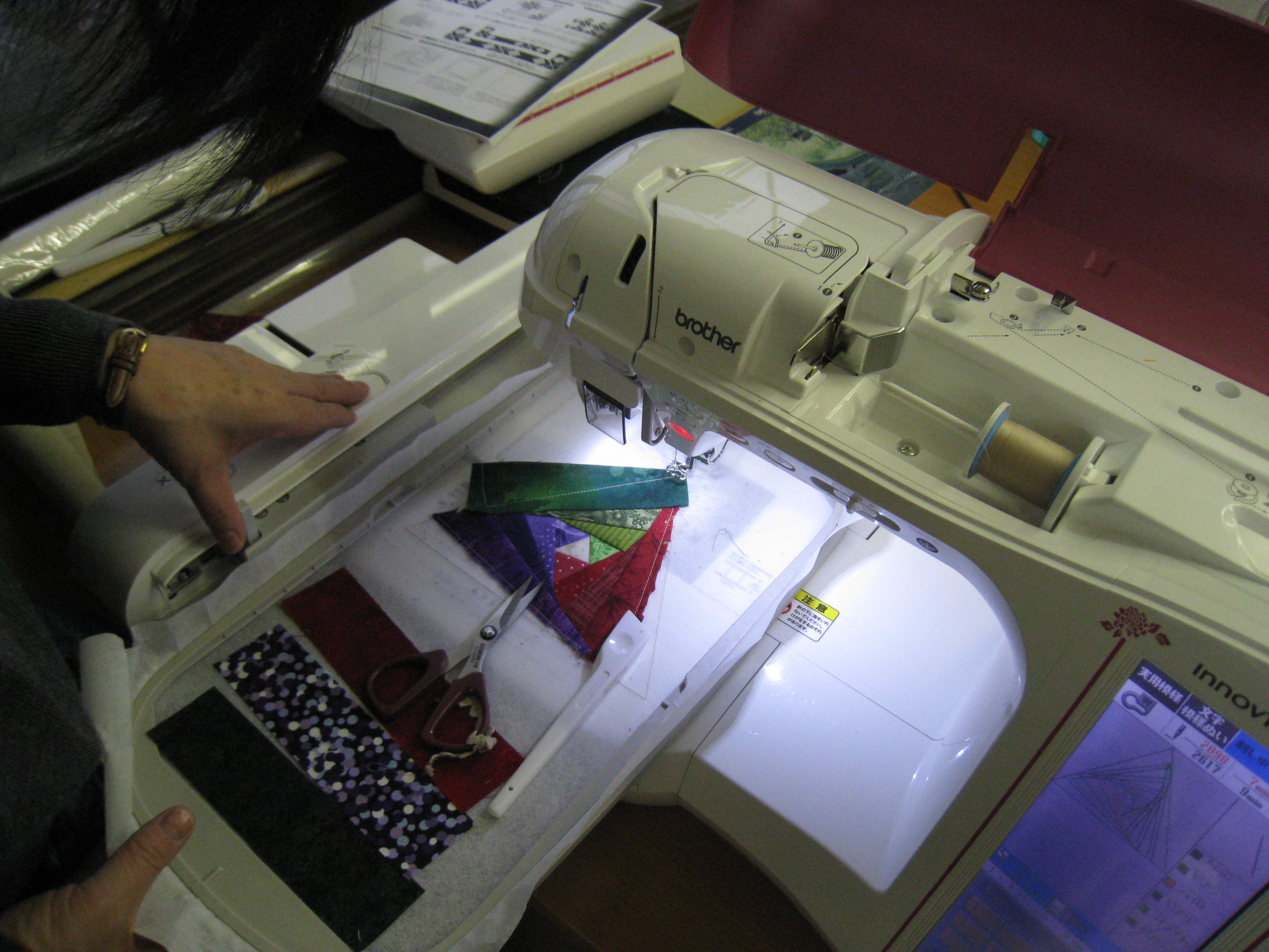 さっそく見せてもらいました。実はこれ、刺しゅうプロでデータを作ってピースを縫い