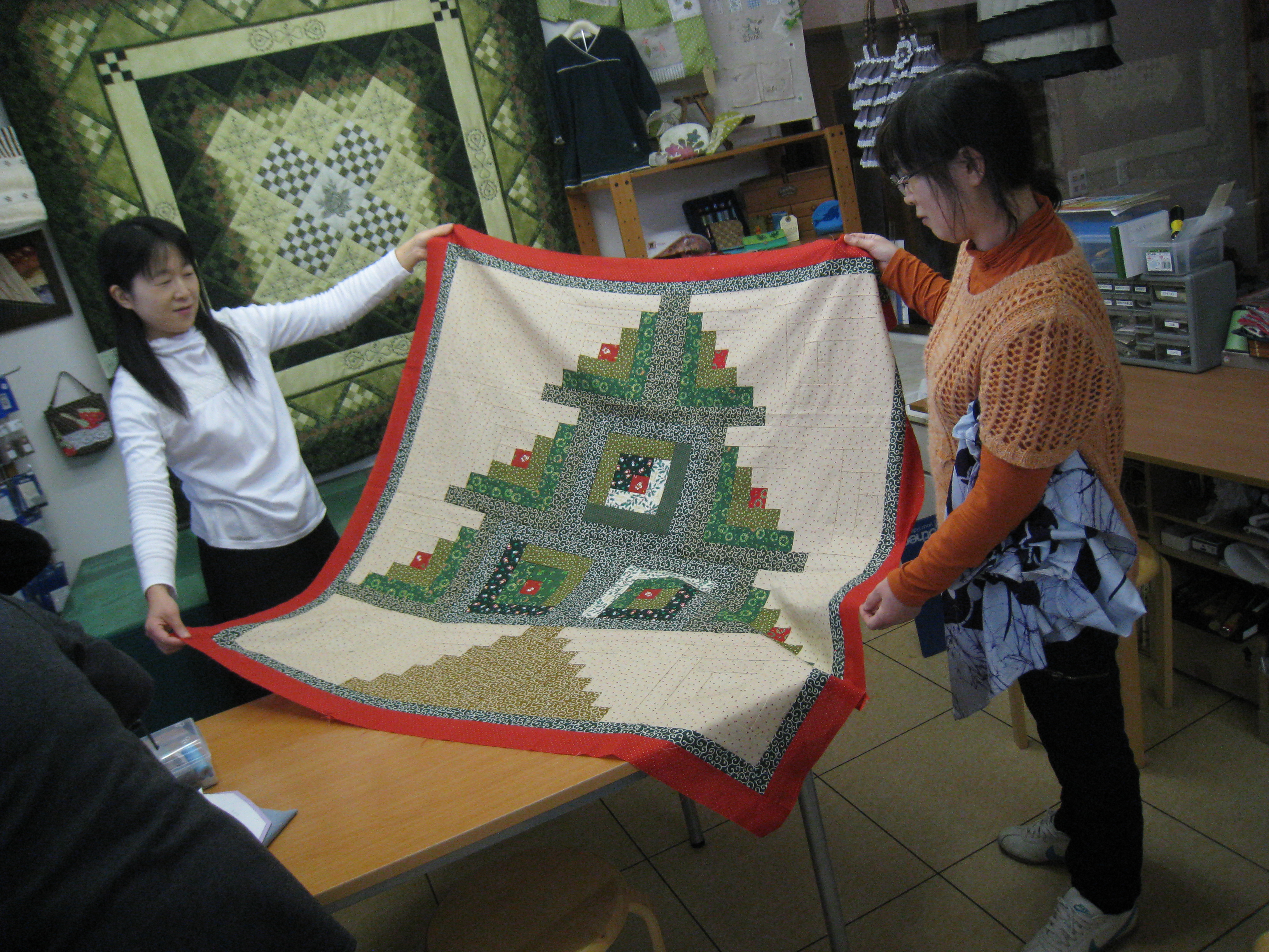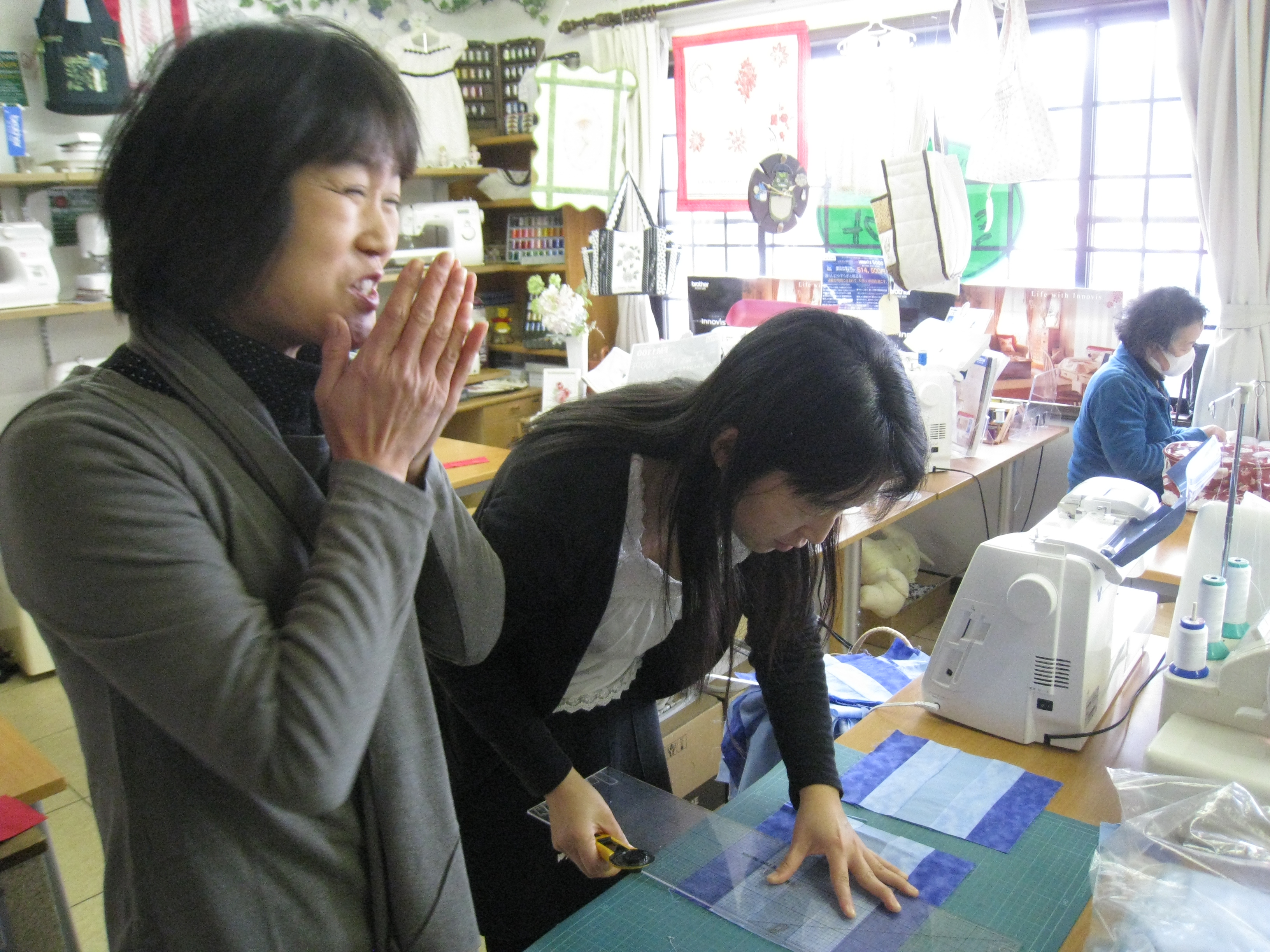 二人それぞれ配色が違います。それぞれの個性が表れるところです。キルトの楽しい
