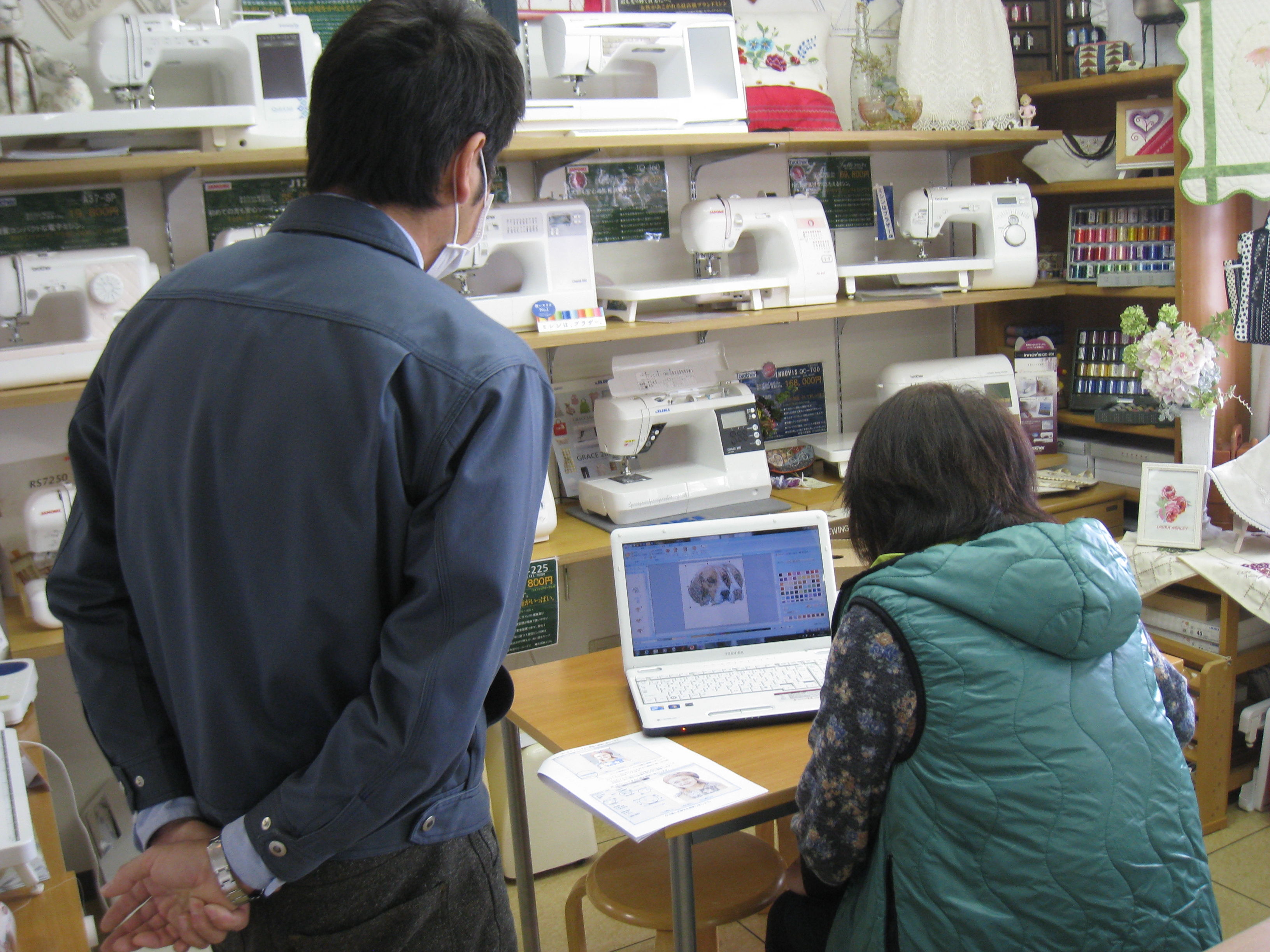 『刺しゅうプロNEXT』の初回講習のため来店され、また、当店の某量販店ミシン