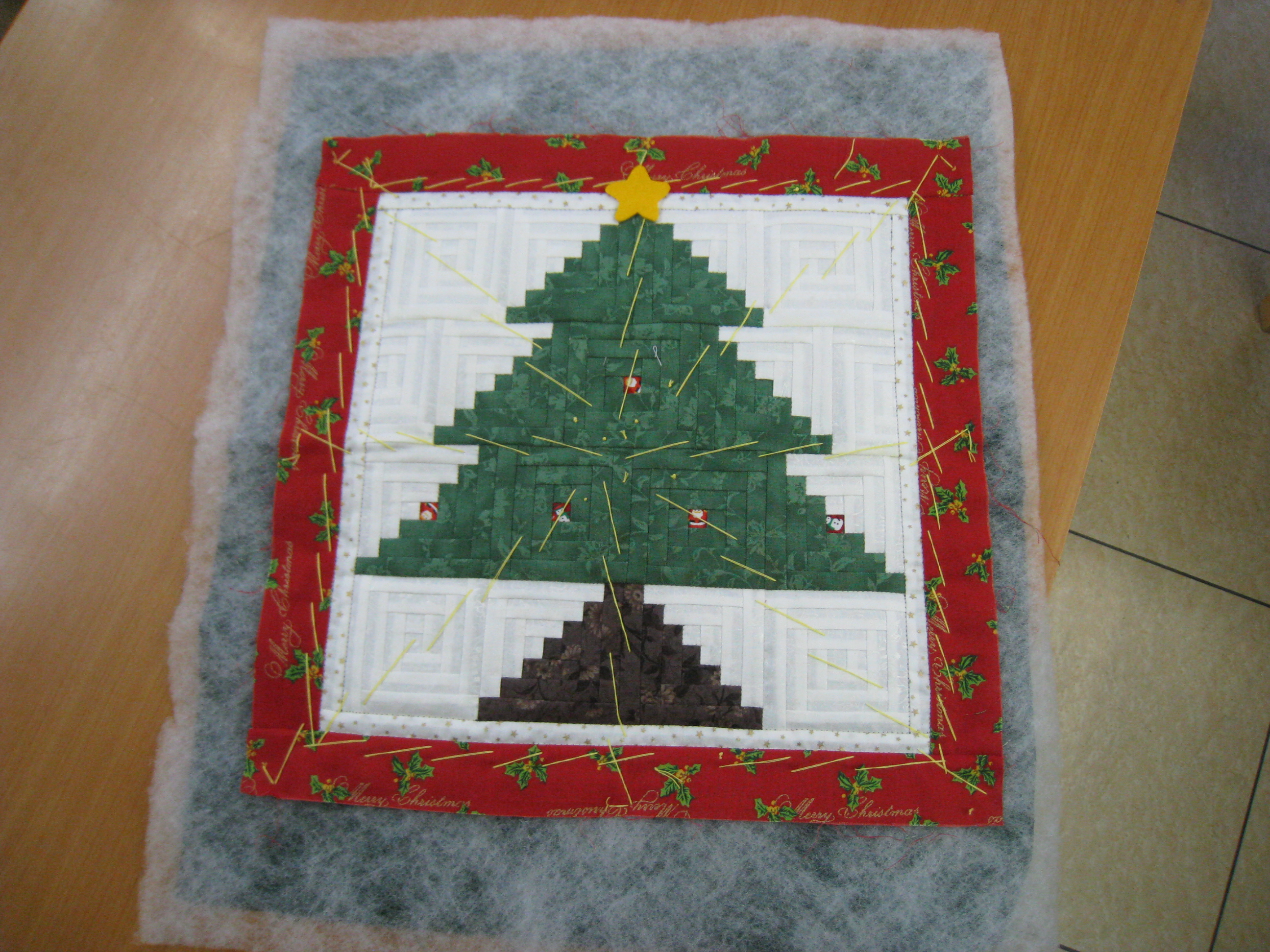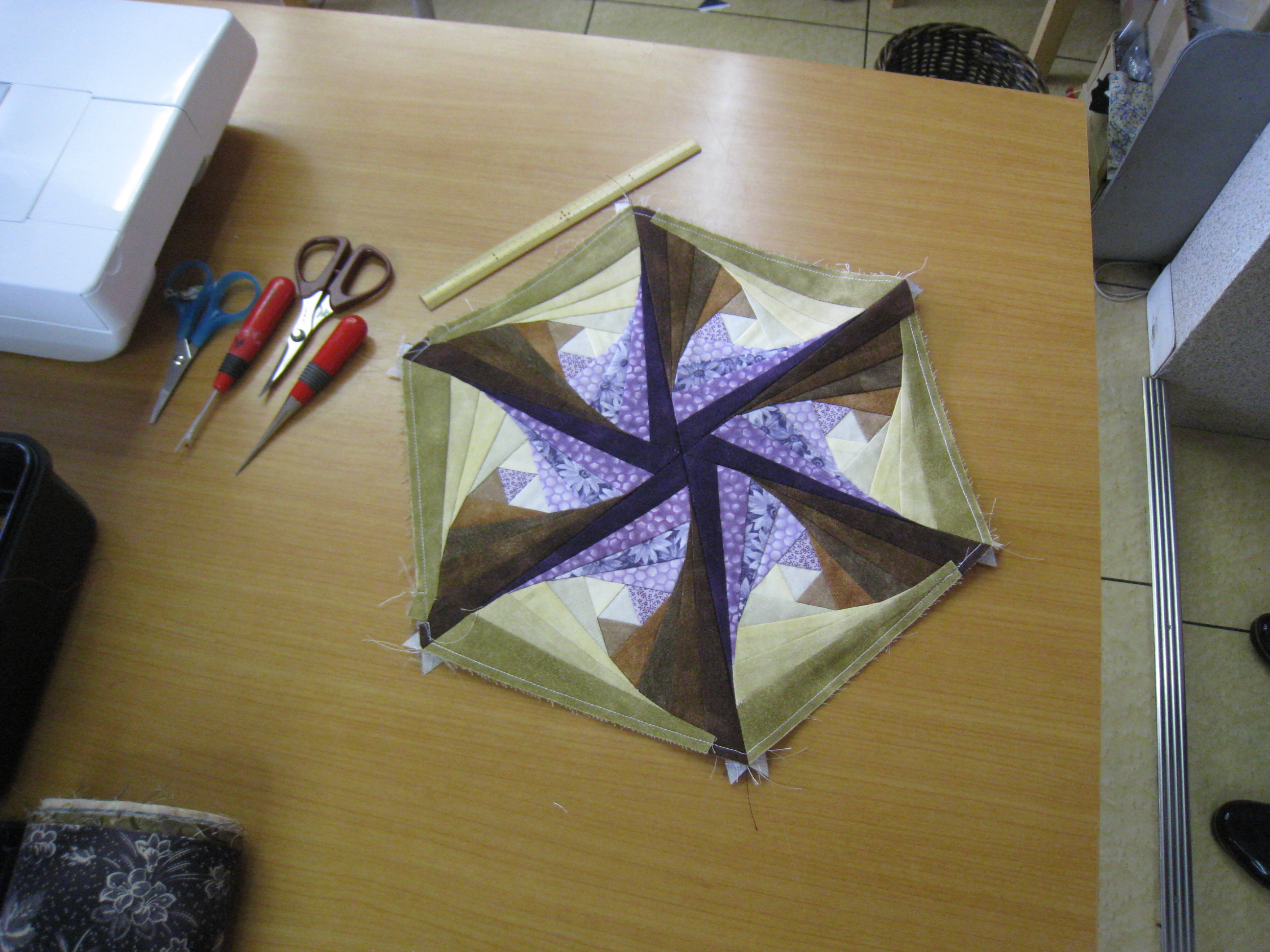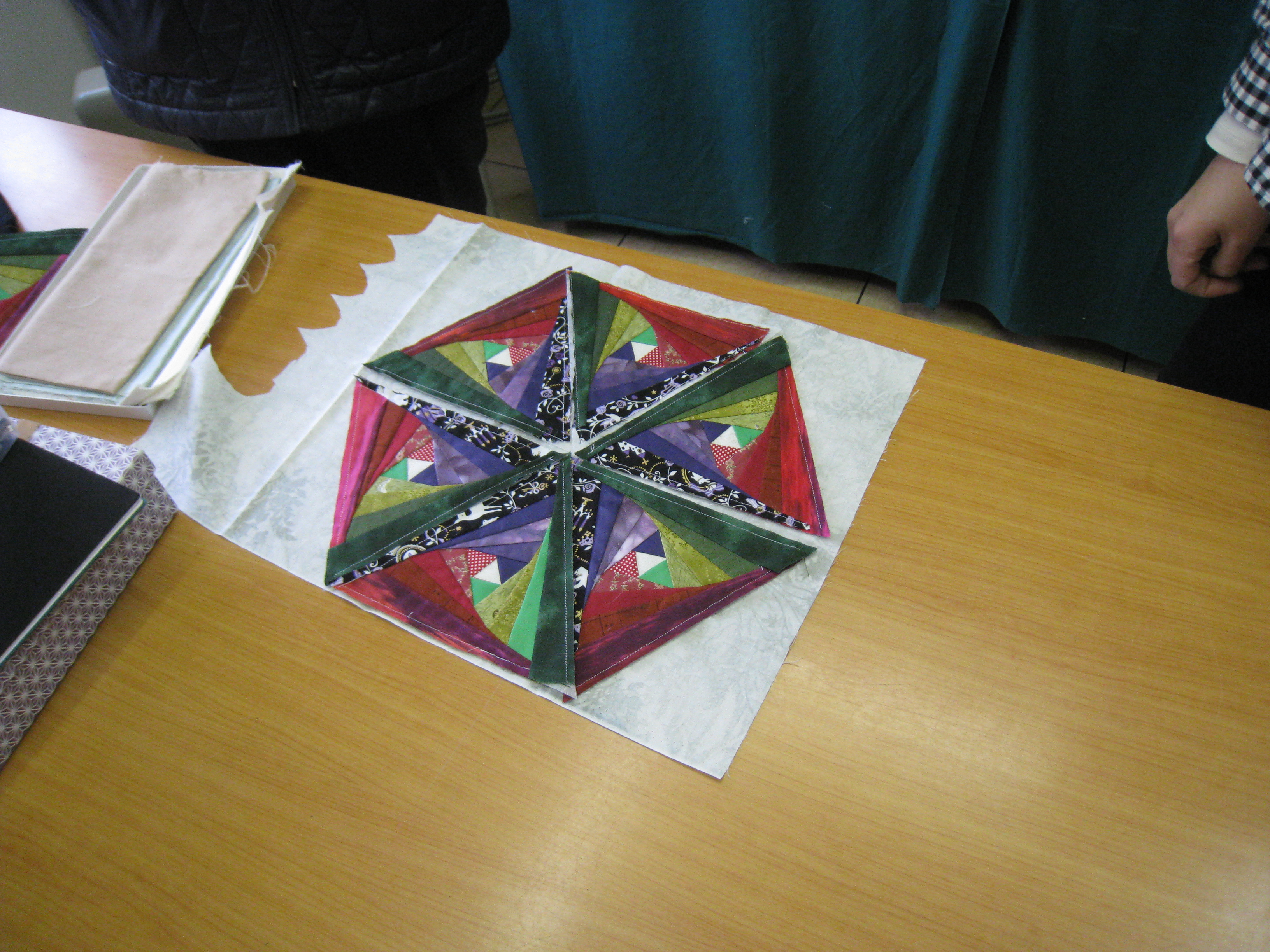 先月の講習会でデータ作りをした『三角形のツイストログキャビン』を実際ミシンで