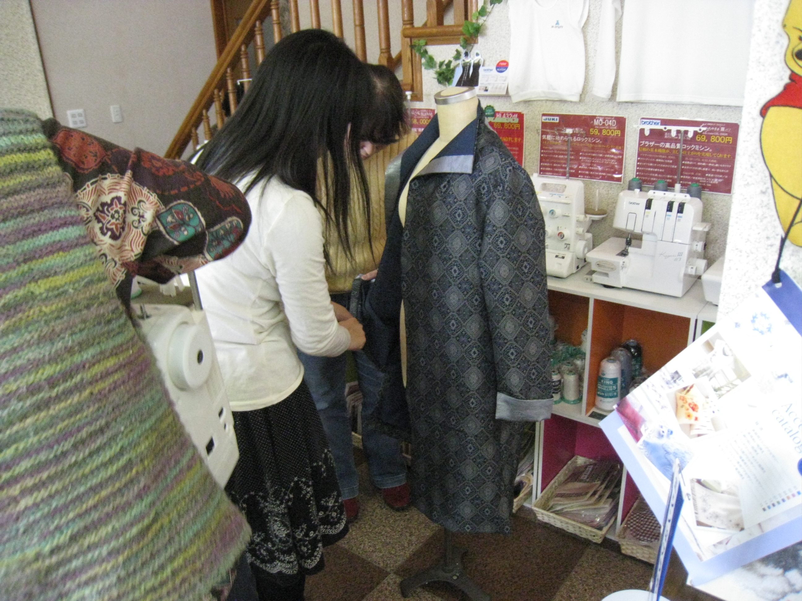 その菅原さん、着物をリフォームしたコートがもうすぐ完成です。これも出来上がりが