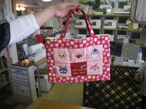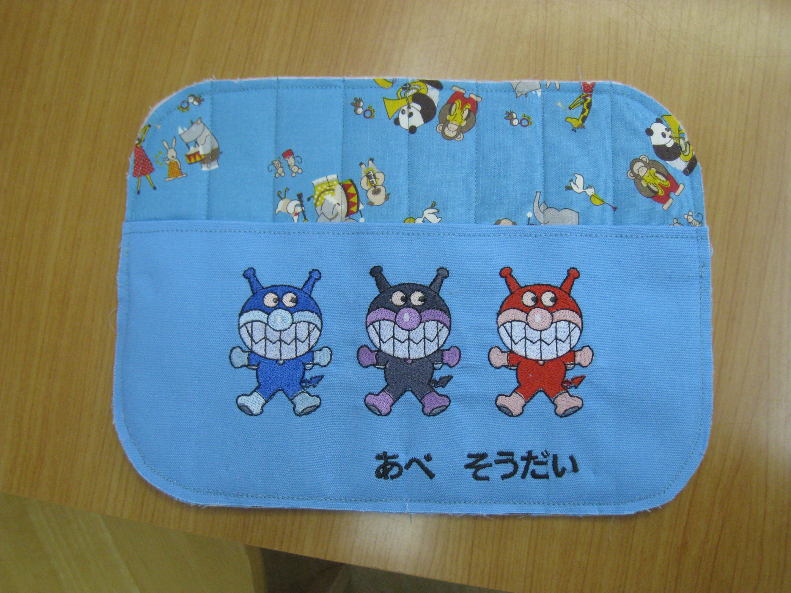 朝、三浦さんが先週買っていただいた『アンパンマン』カードの刺しゅうを入れた『手提げ袋』と