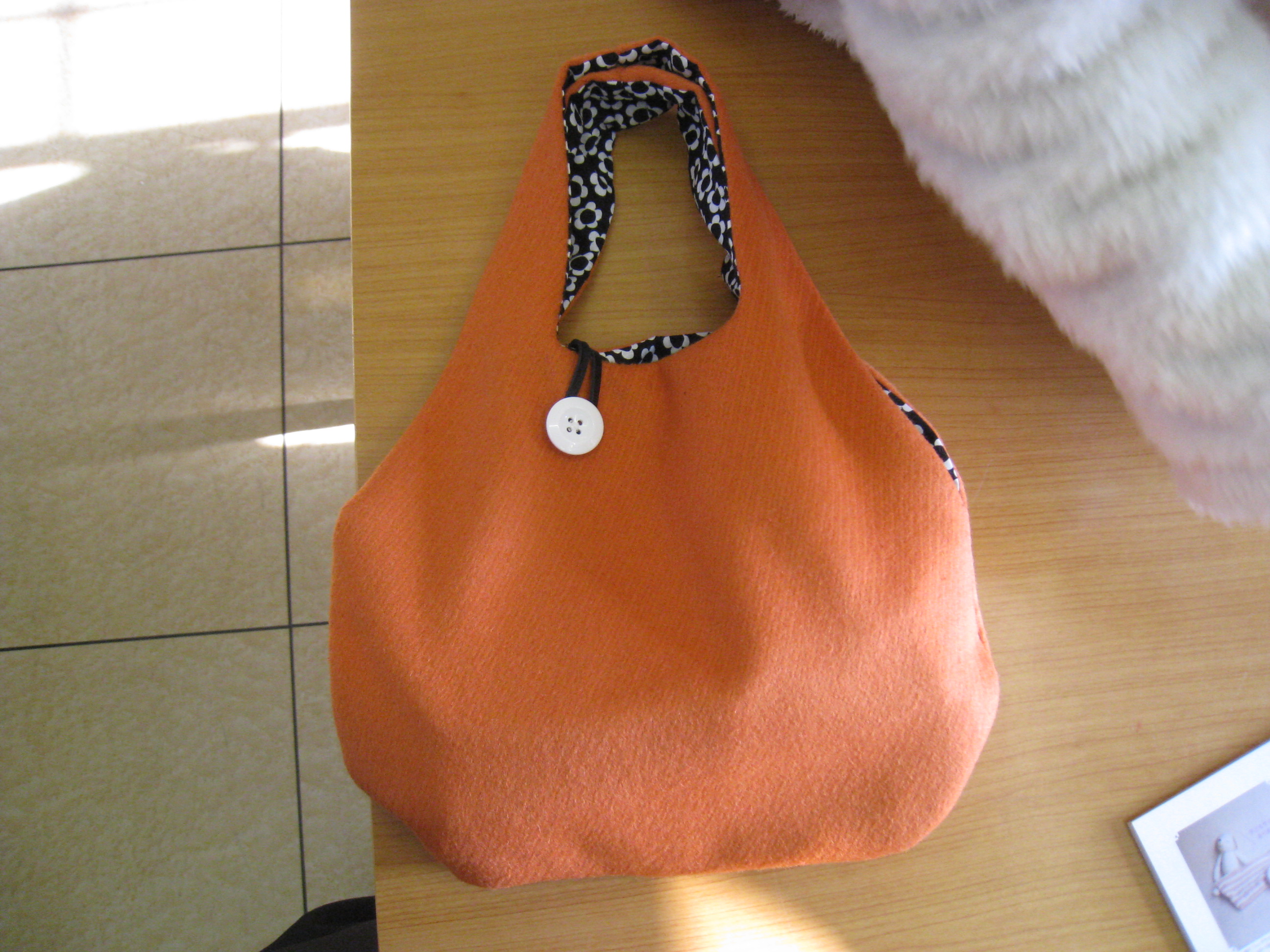 かわいらしいエコバッグです。今日は帽子作りを張り切っています。あまり根をつめないように