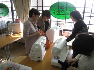 初めて参加の釼持さんは、今日は初回講習のエコバッグ作りです。ちょっと緊張ぎみでしたが