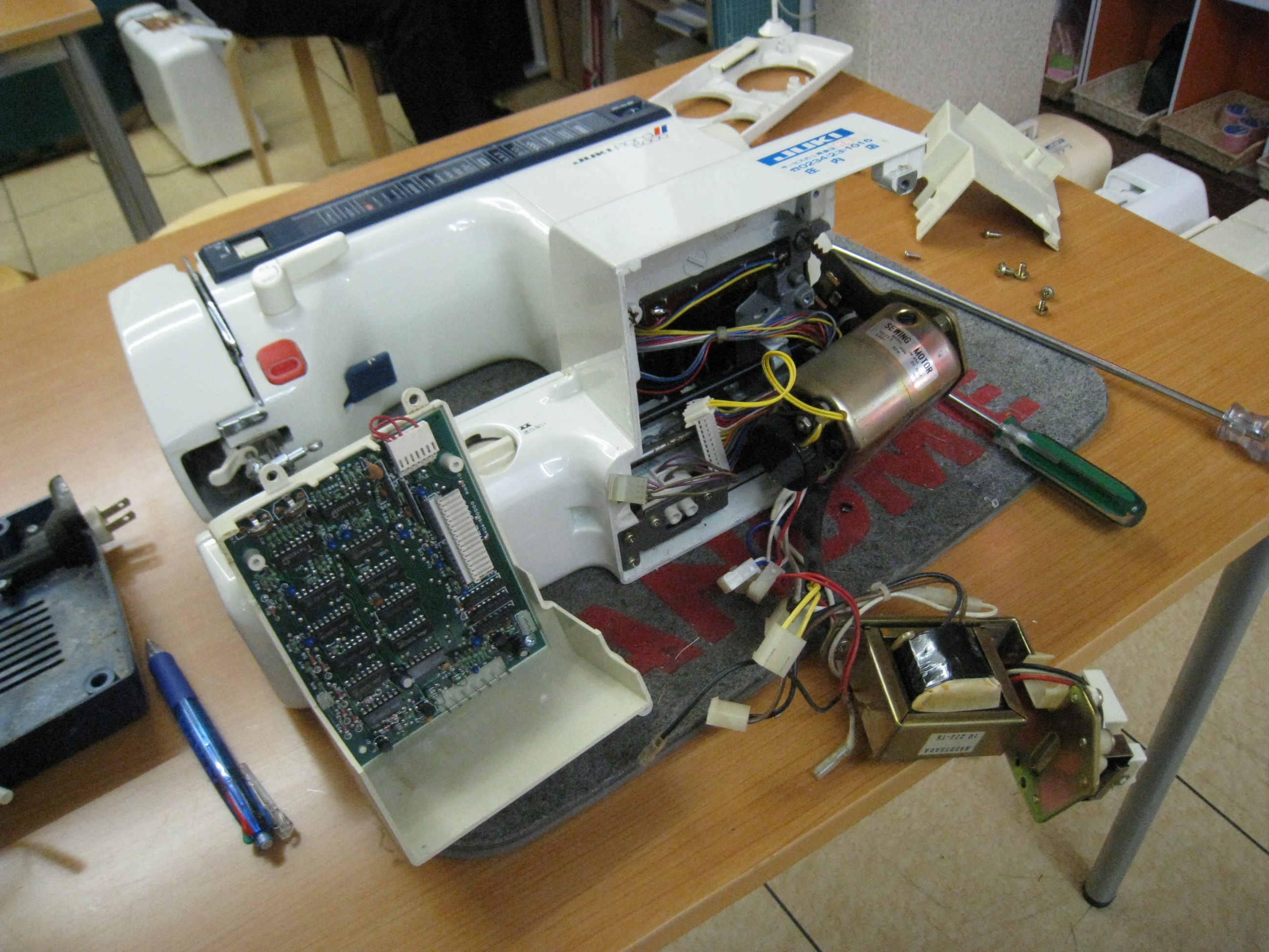 で、月曜日から、夜、ミシン修理を始めました。さすがに夜は集中できます。昼は安達君が