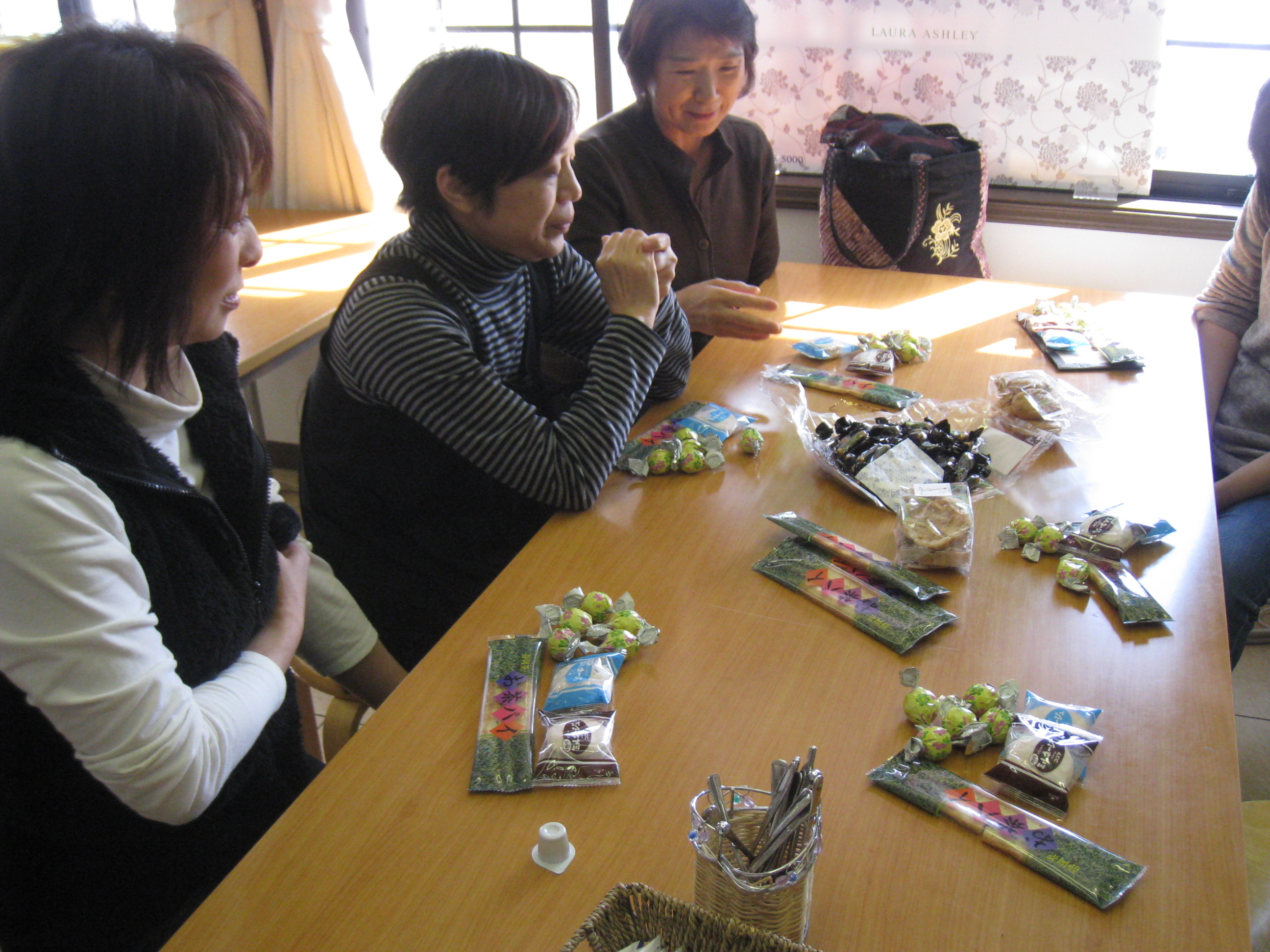 講習会後のコーヒータイムはケーキの代わりのお菓子で、送別会と誕生会を兼ねてお茶のみ話