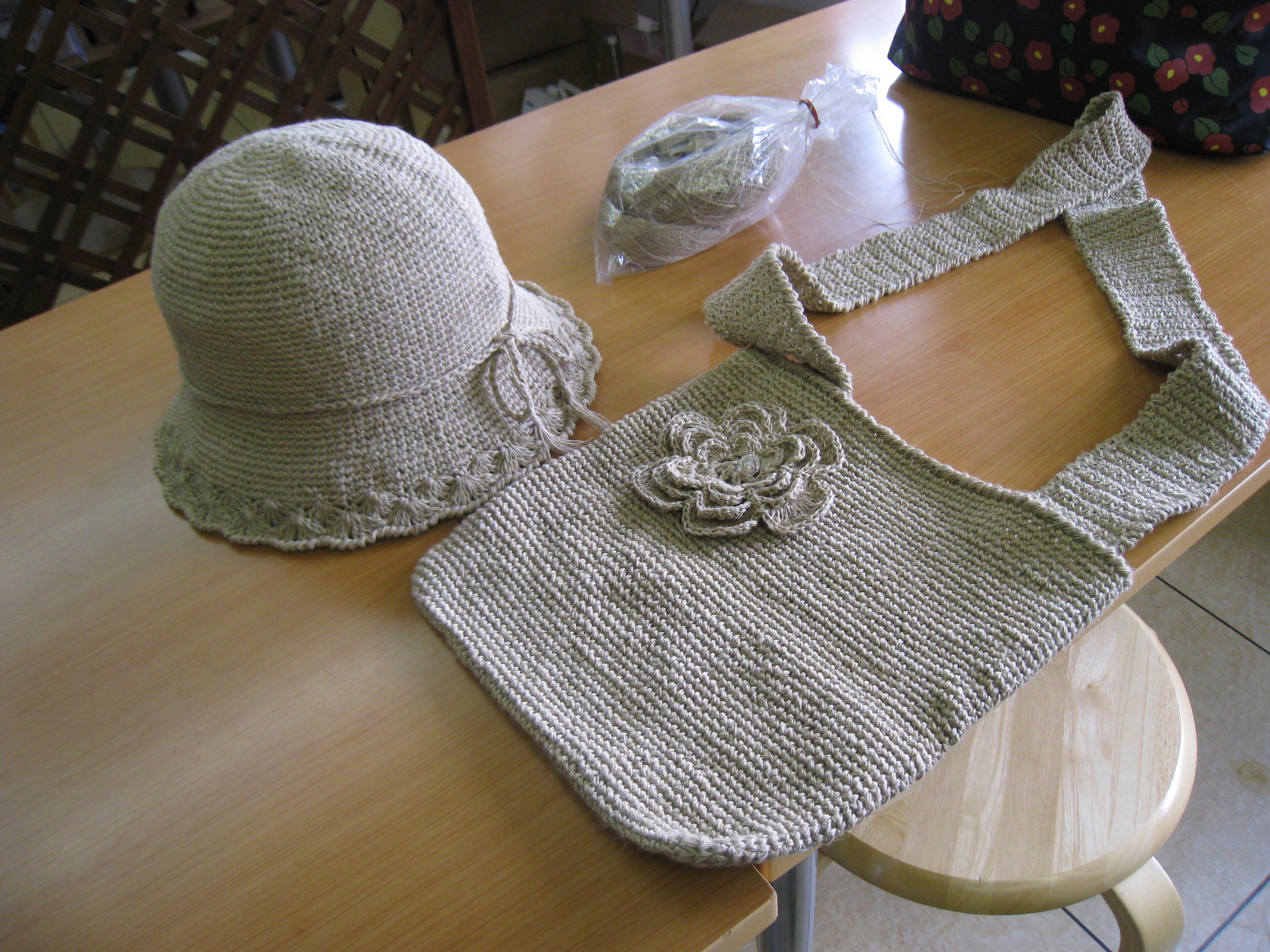 さっそく、後藤さんは麻糸で手編みした、帽子とポシェットを披露。帽子のつばの処理と