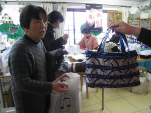 今井さんはタタミのヘリのバッグを完成です。正月明けから作り始めて2回目の講習で