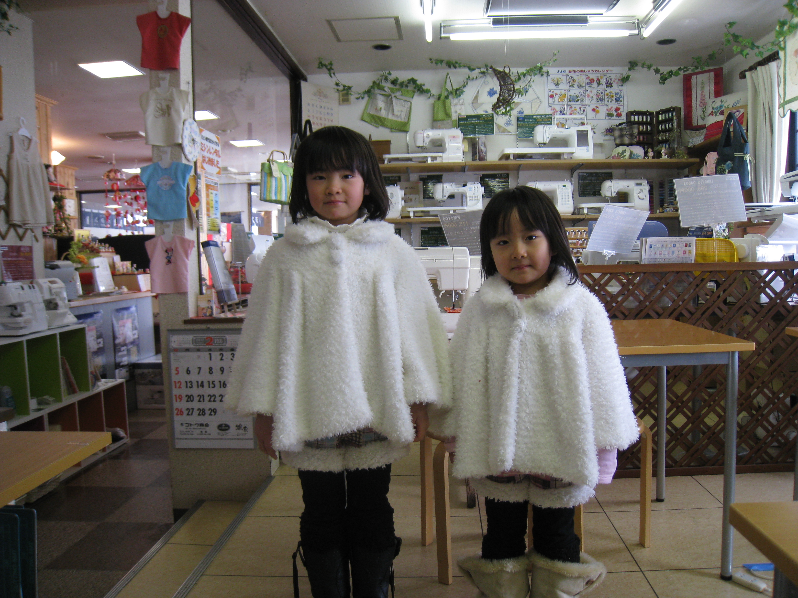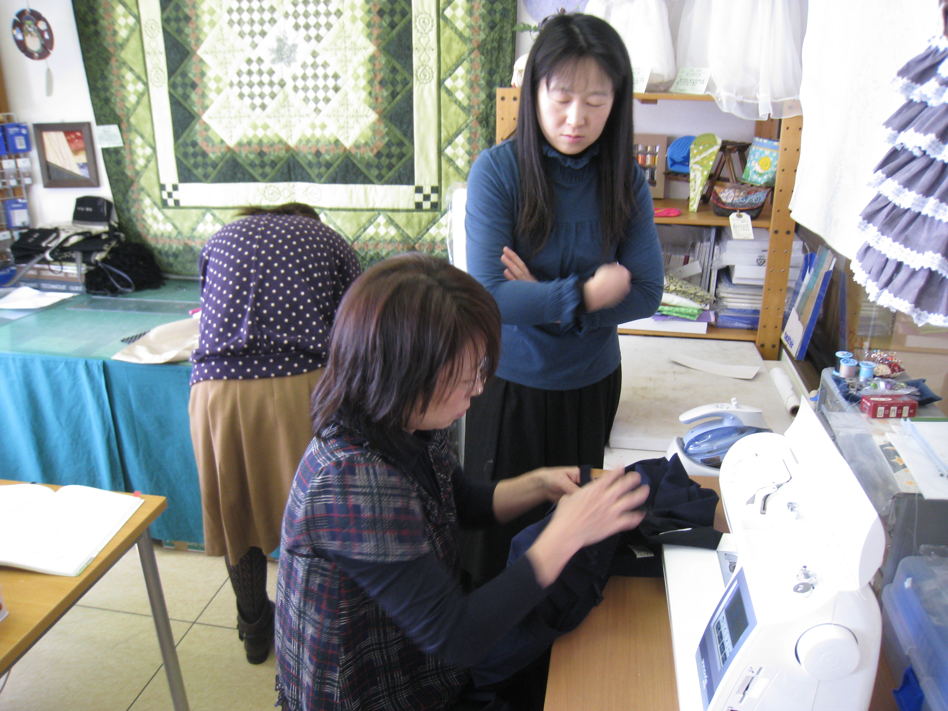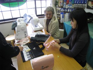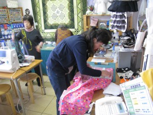 講習会前に金丸さんが修理ミシンを受け取りに娘さん二人を連れて来店。娘さんの着ている