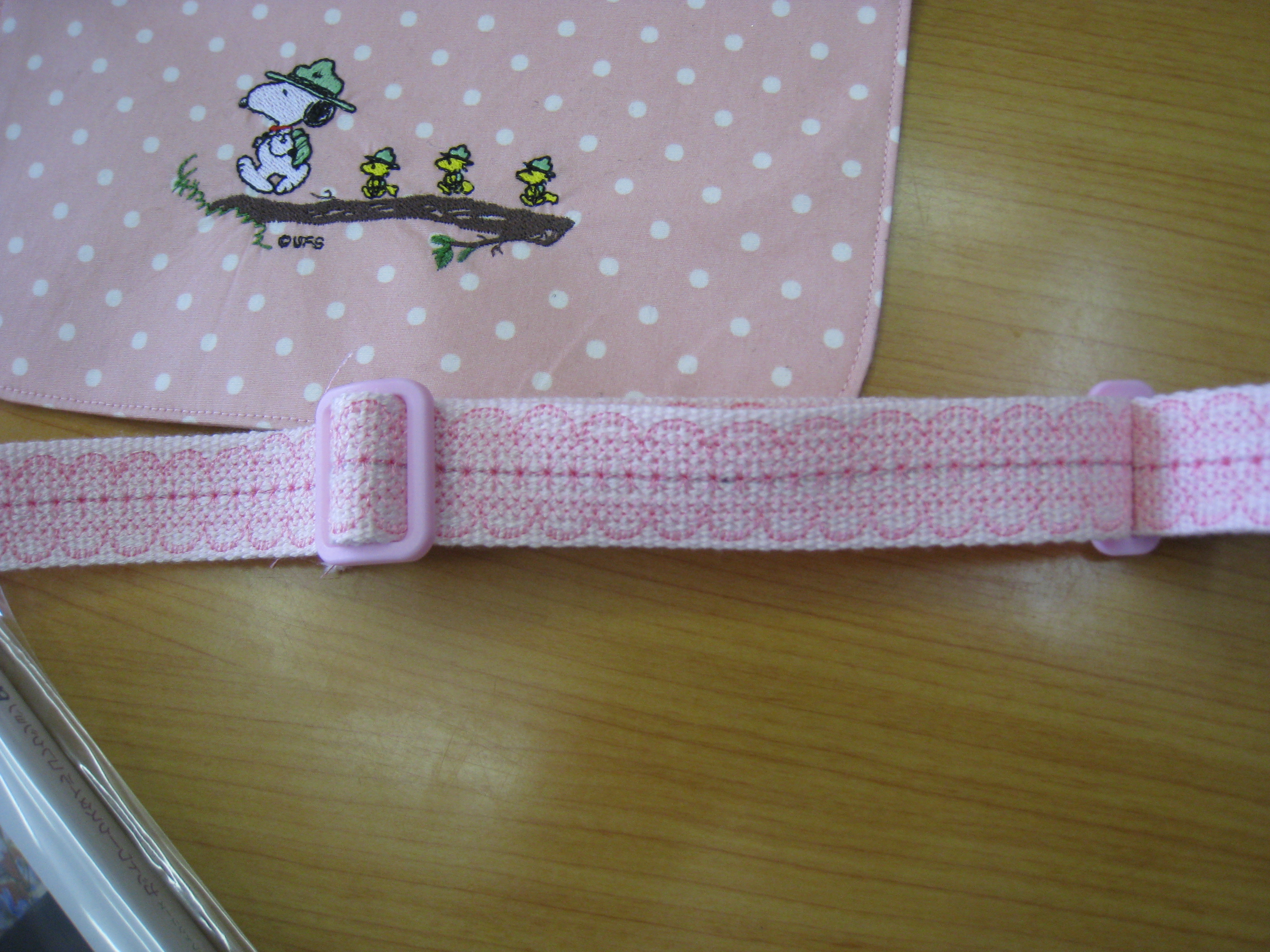 スヌーピーの刺しゅうもポイントです。
