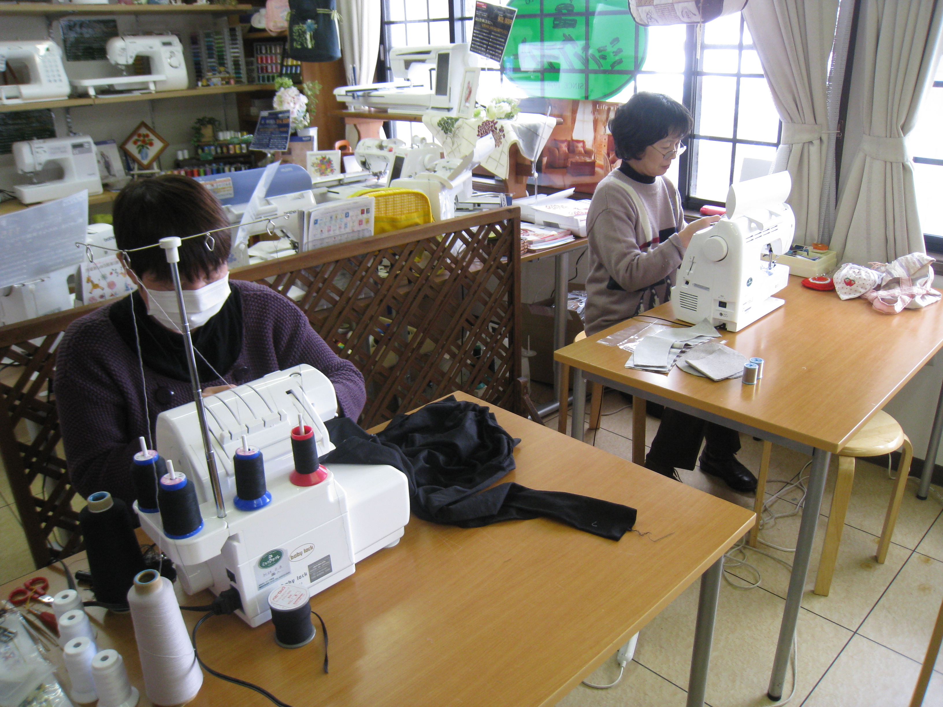 皆さんと会うのは、3ヶ月ぶりの敦子さんが来店。今日はロックミシンと裁縫道具と