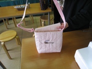 朝、飯白さんが出来たばかりのバッグを見せてくれました。皆さんから口々に『ステキ』と言わ