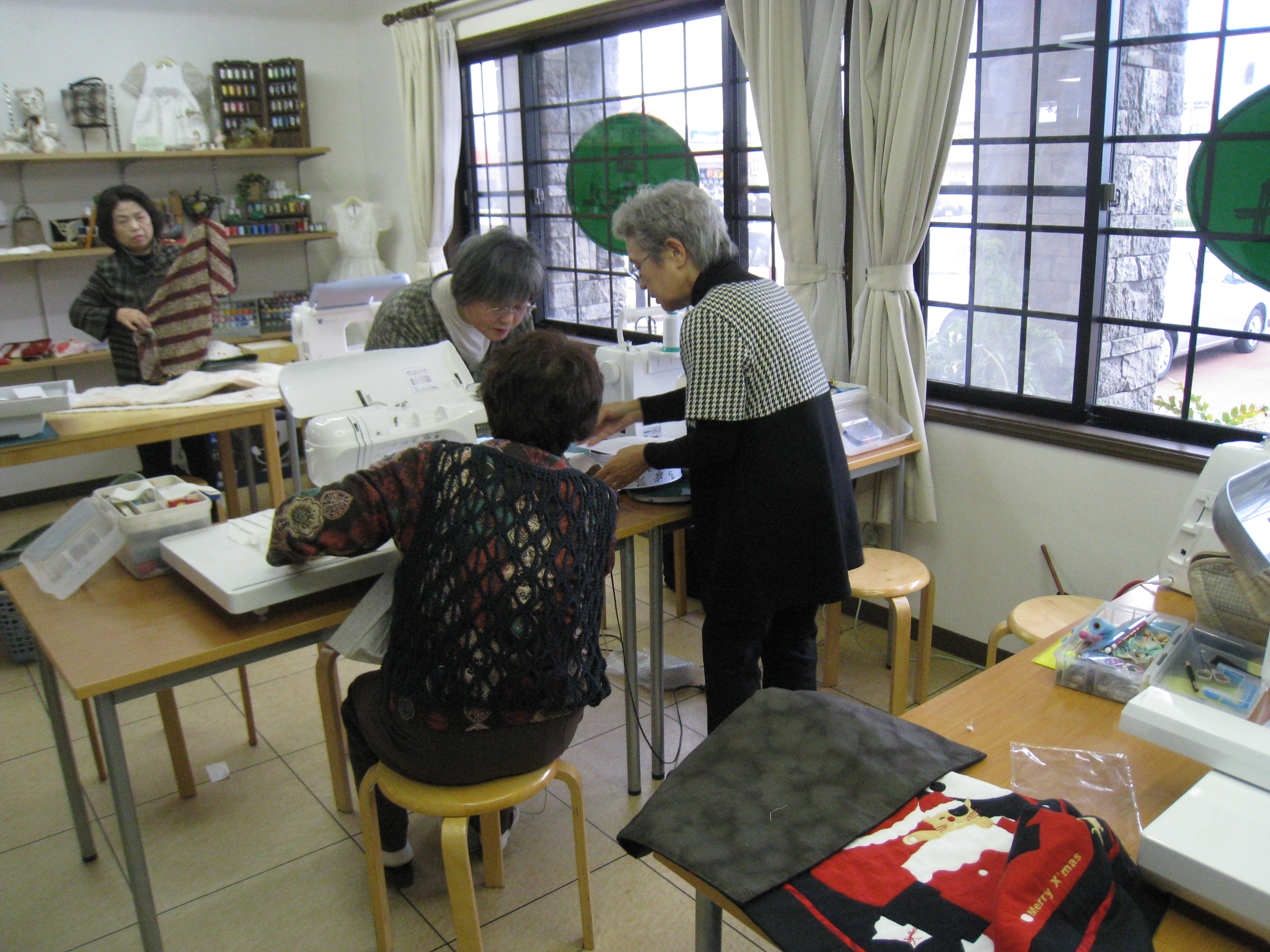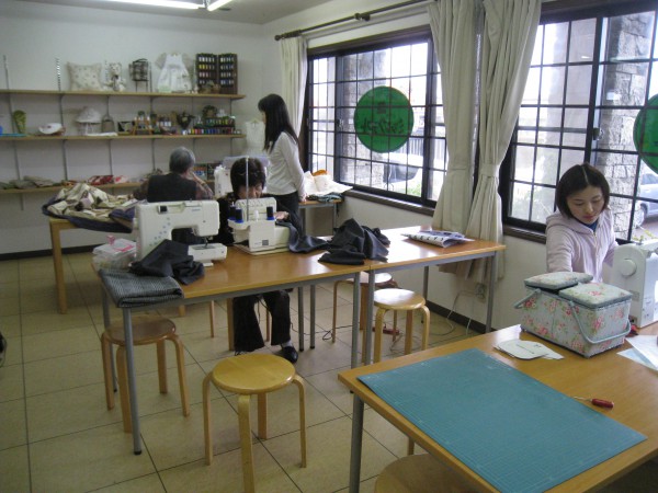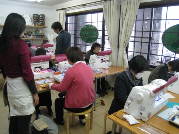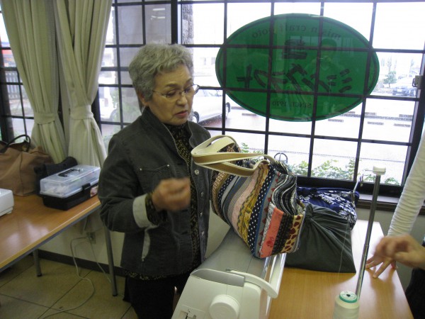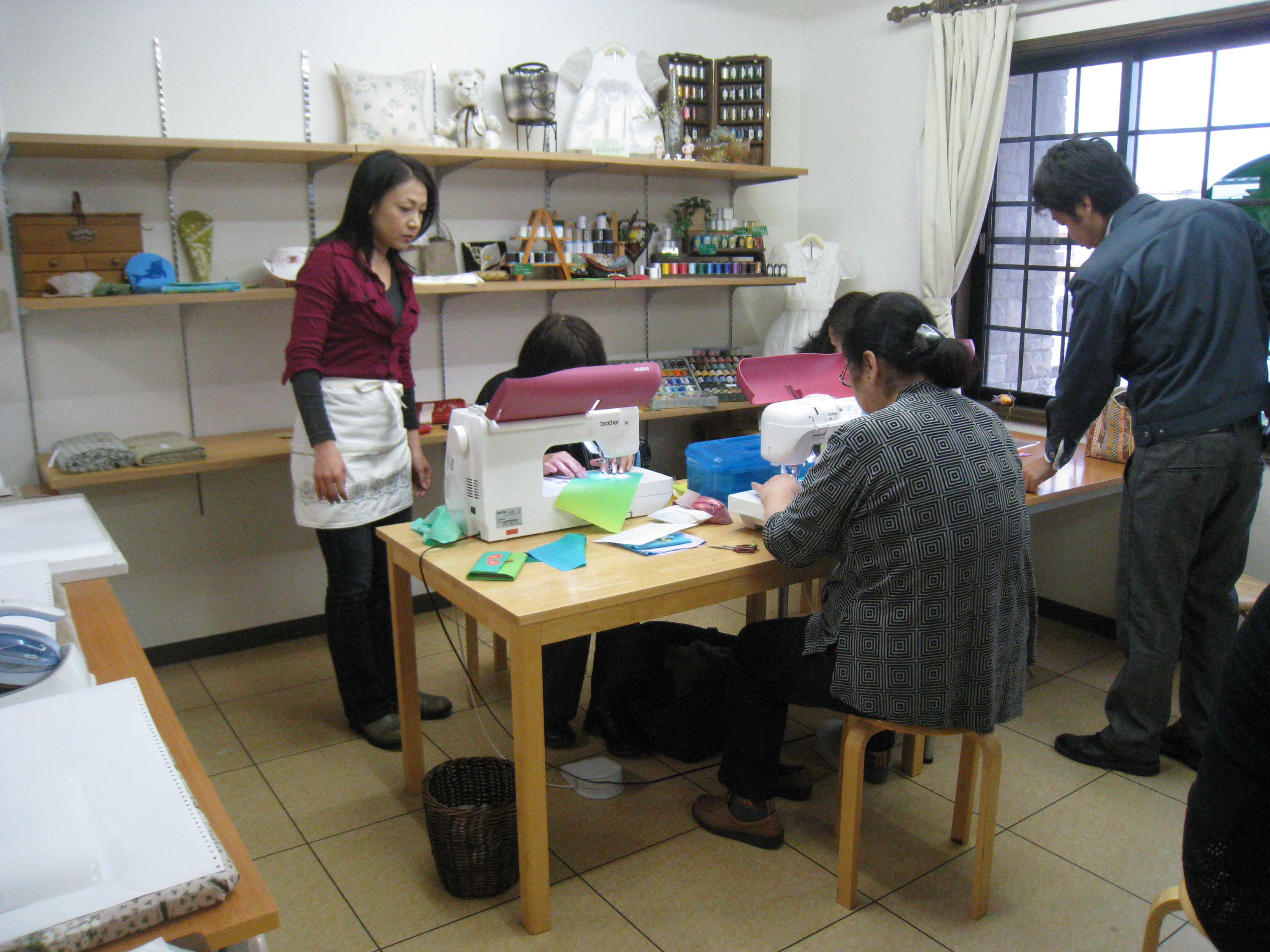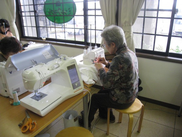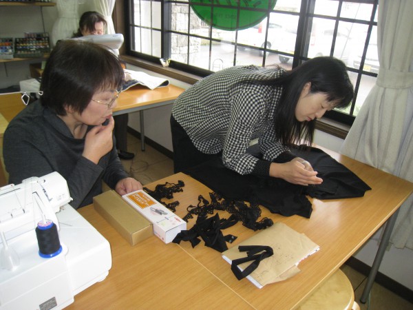 菅原さんが『無理だー』と弱音をはきながらミシンを使ってますが、講師の吉森さんの