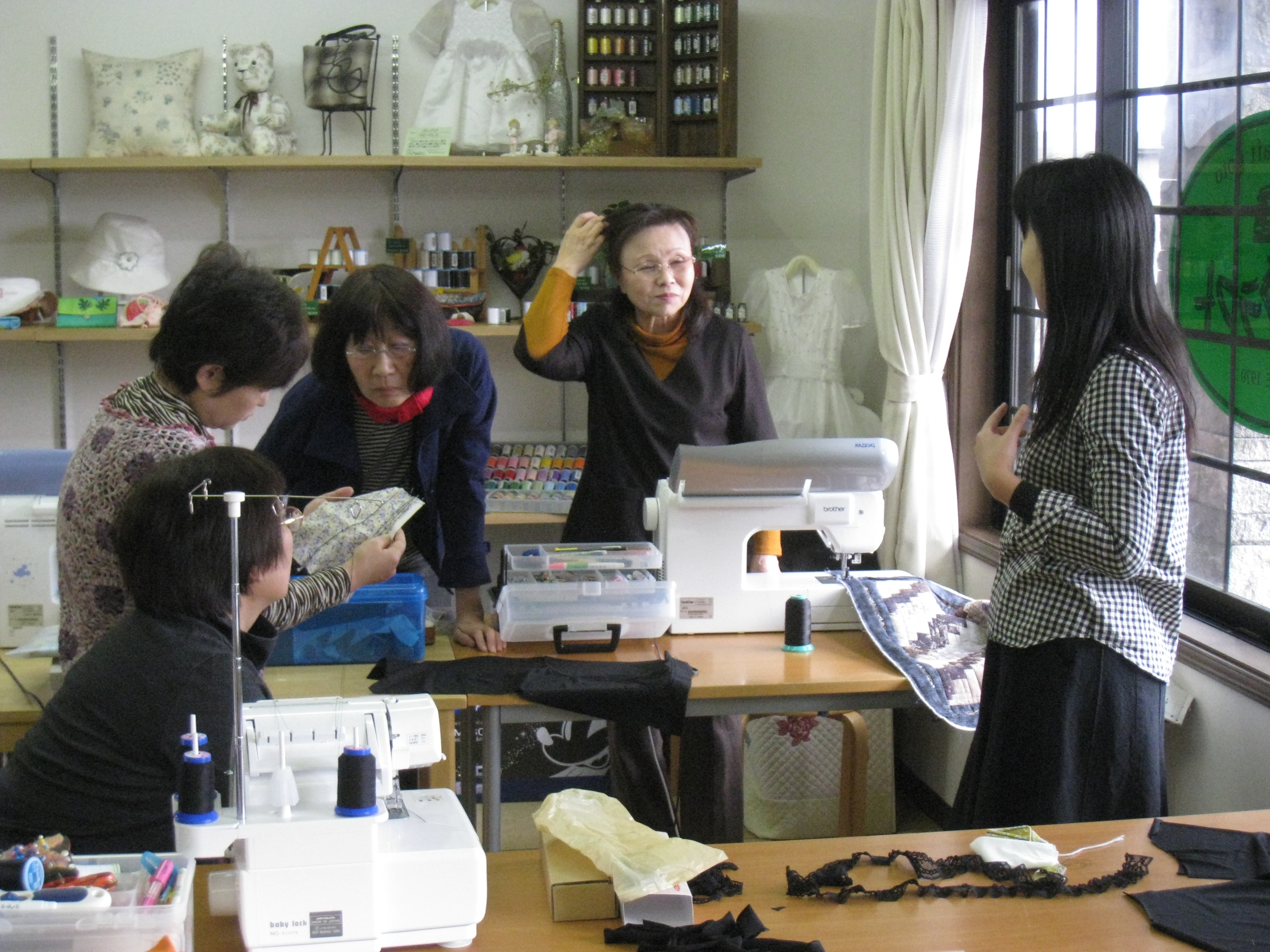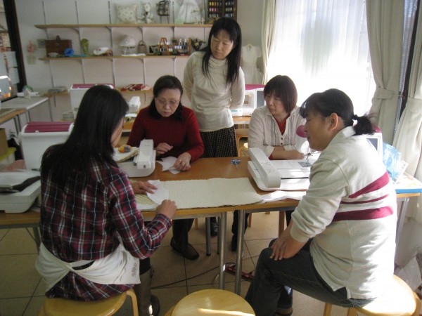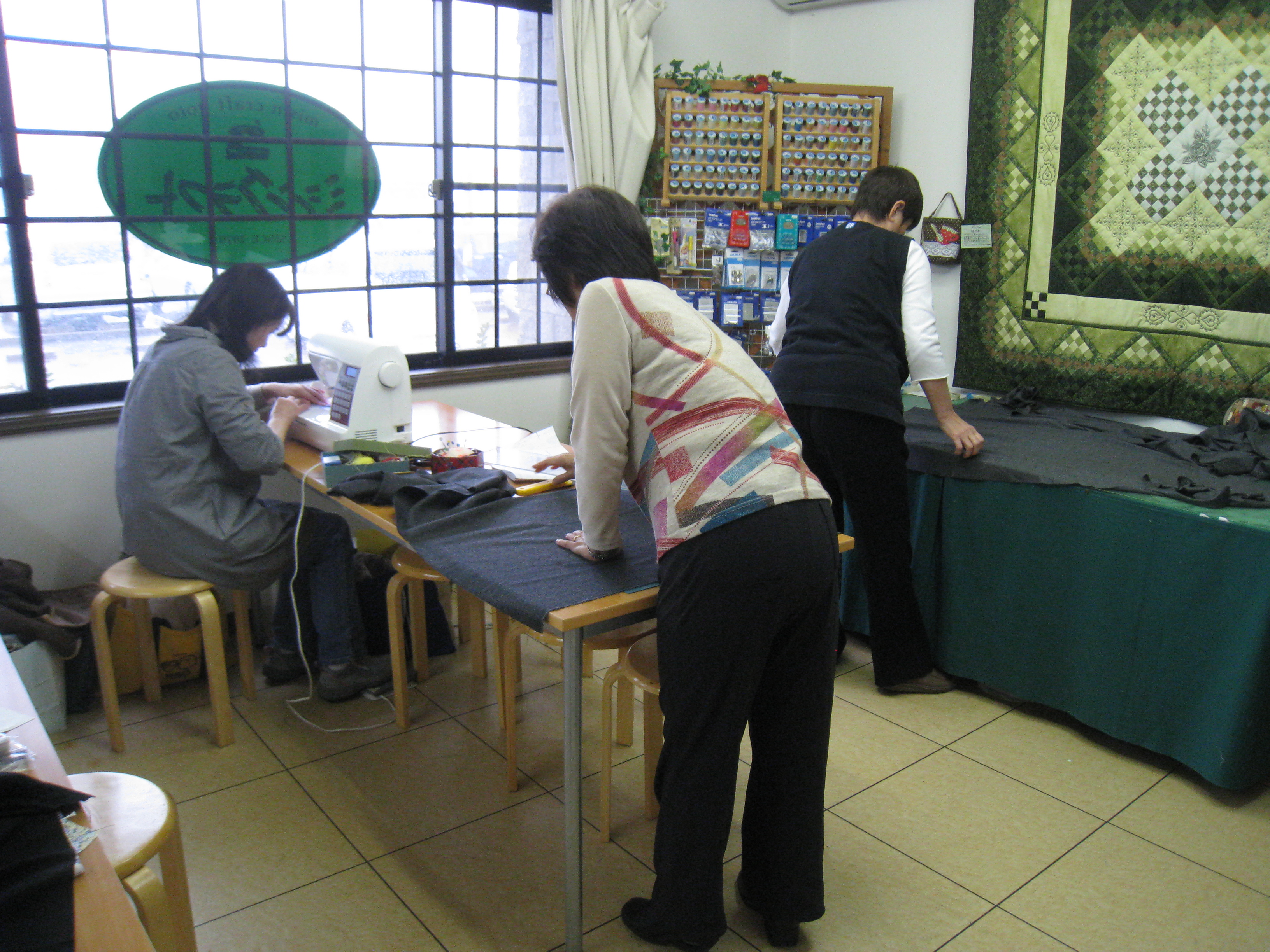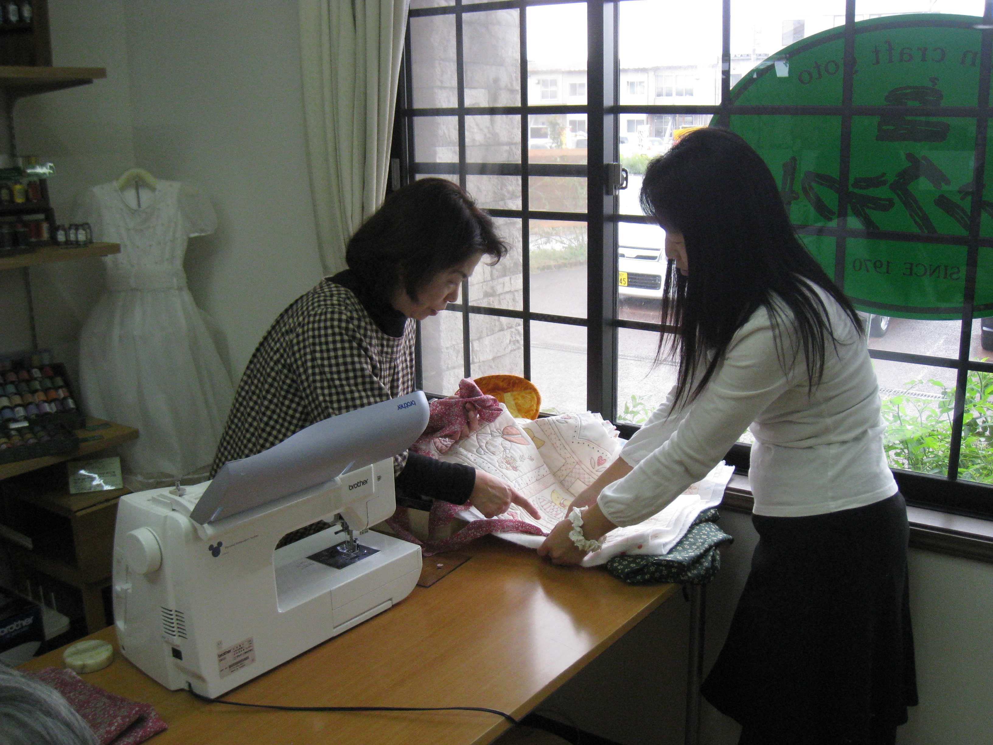 菅原さんが『無理だー』と弱音をはきながらミシンを使ってますが、講師の吉森さんの